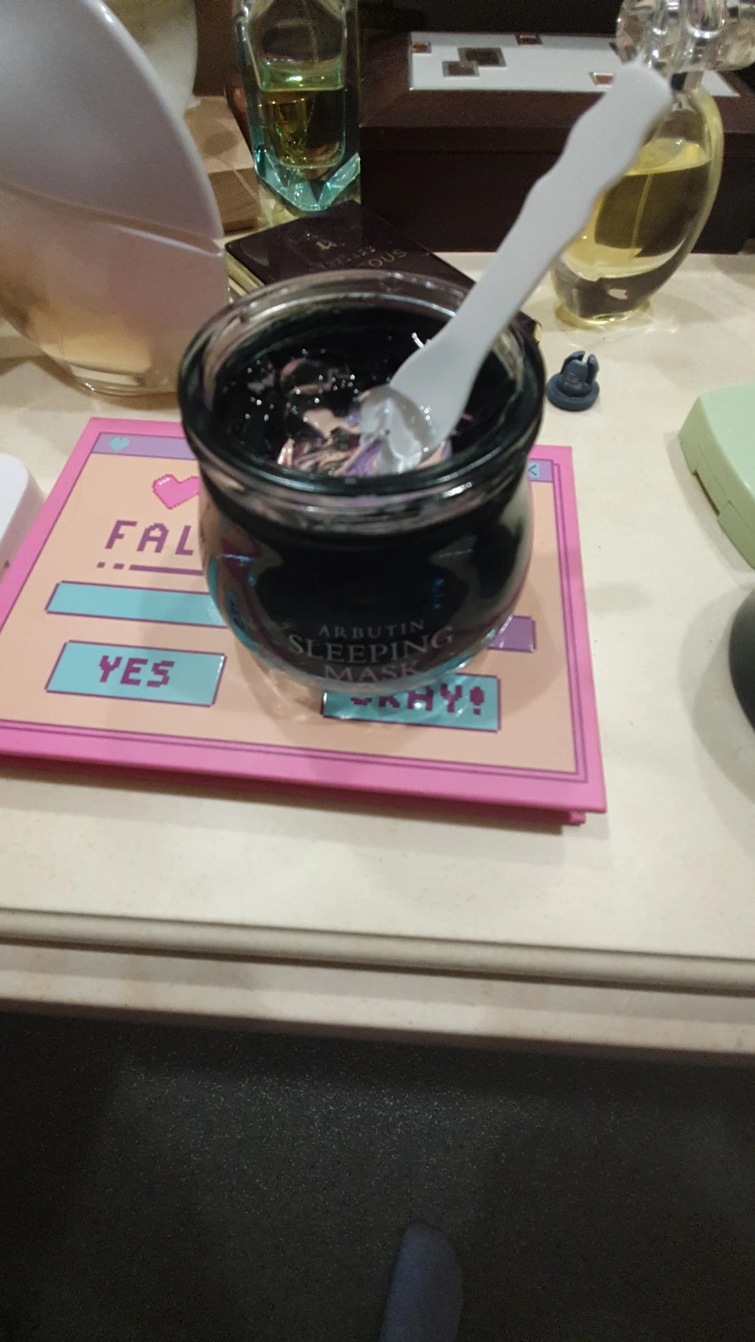 Доставка долгая ! Упаковка - простой конверт , коробка мятая , баночка с маской не пострадала . Пользуюсь ... при нанесении остаётся липкость , но впитывается в кожу , утром приятное ощущение .