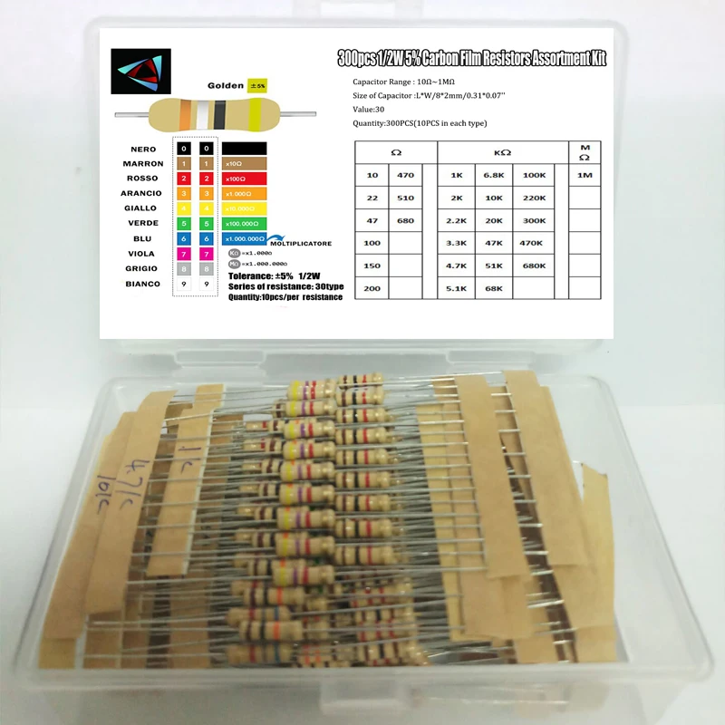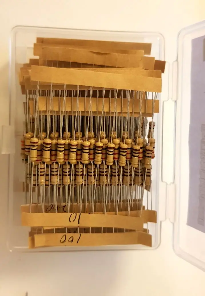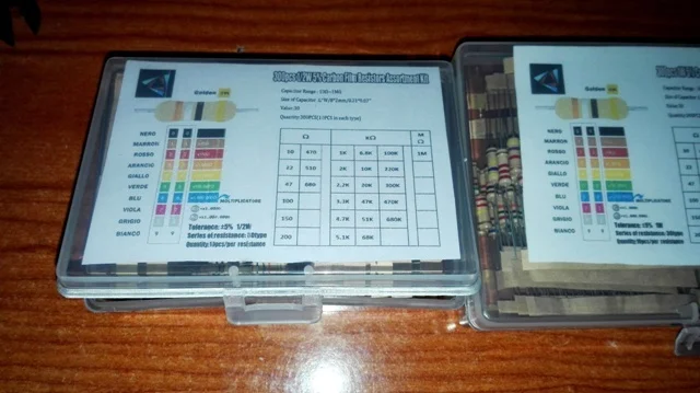 Резисторы входят в жесткий пластиковый защитный чехол. И Каждый набор резисторов отмечен рейтингом.