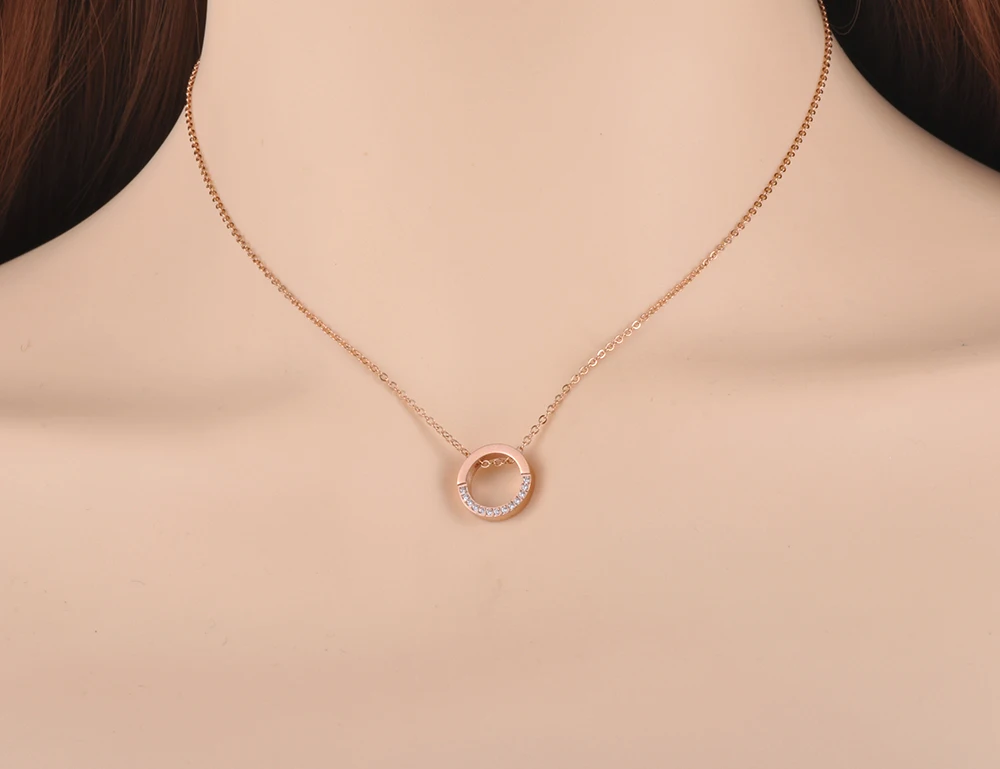 Ожерелье женское эмалированное под розовое золото вечерние кулоном ...