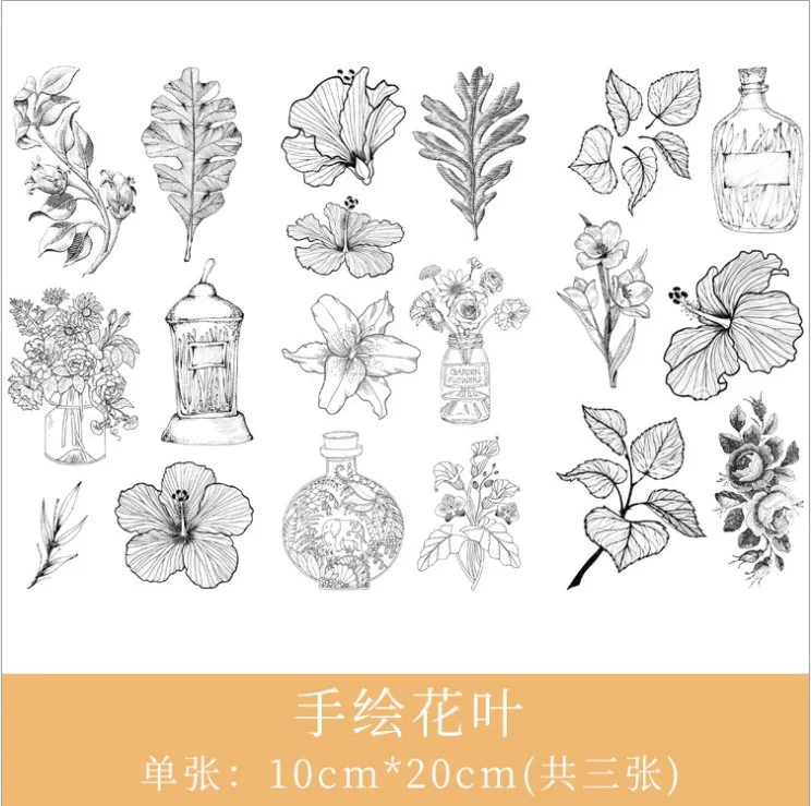 3 листа винтажные растения перо дорожный штамп клейкая бумага накле...