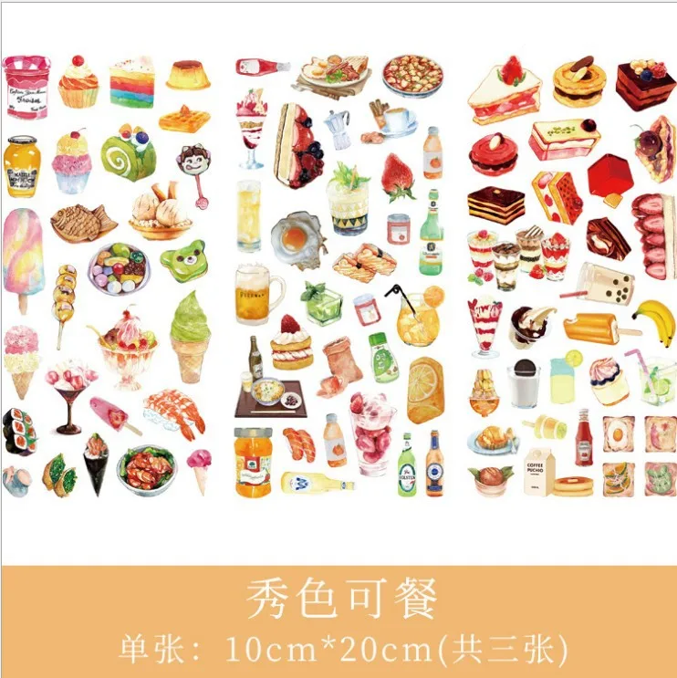 3 листа, Канцтовары из Бангкока с изображением вкусной еды, наклейк...