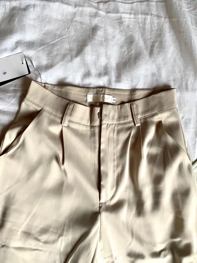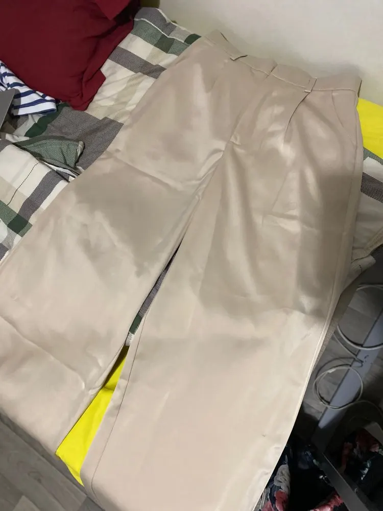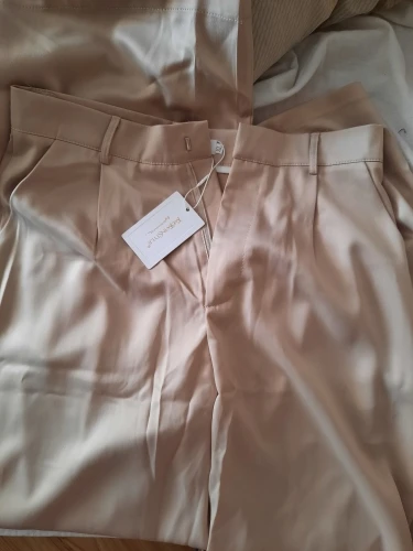 Брюки выглядят и стоят дорого. Выглядит точно так же, как на картинке и не является прозрачным. Брюки красивого бежевого цвета, их можно носить весной, так как они не слишком толстые и тонкие. Брюки доставлены очень быстро. Это занимает всего 7 дней! Этот продавец отправляет товары очень быстро. Обратите внимание на таблицу размеров, поскольку она является точной. Я настоятельно рекомендую эти брюки от этого продавца.