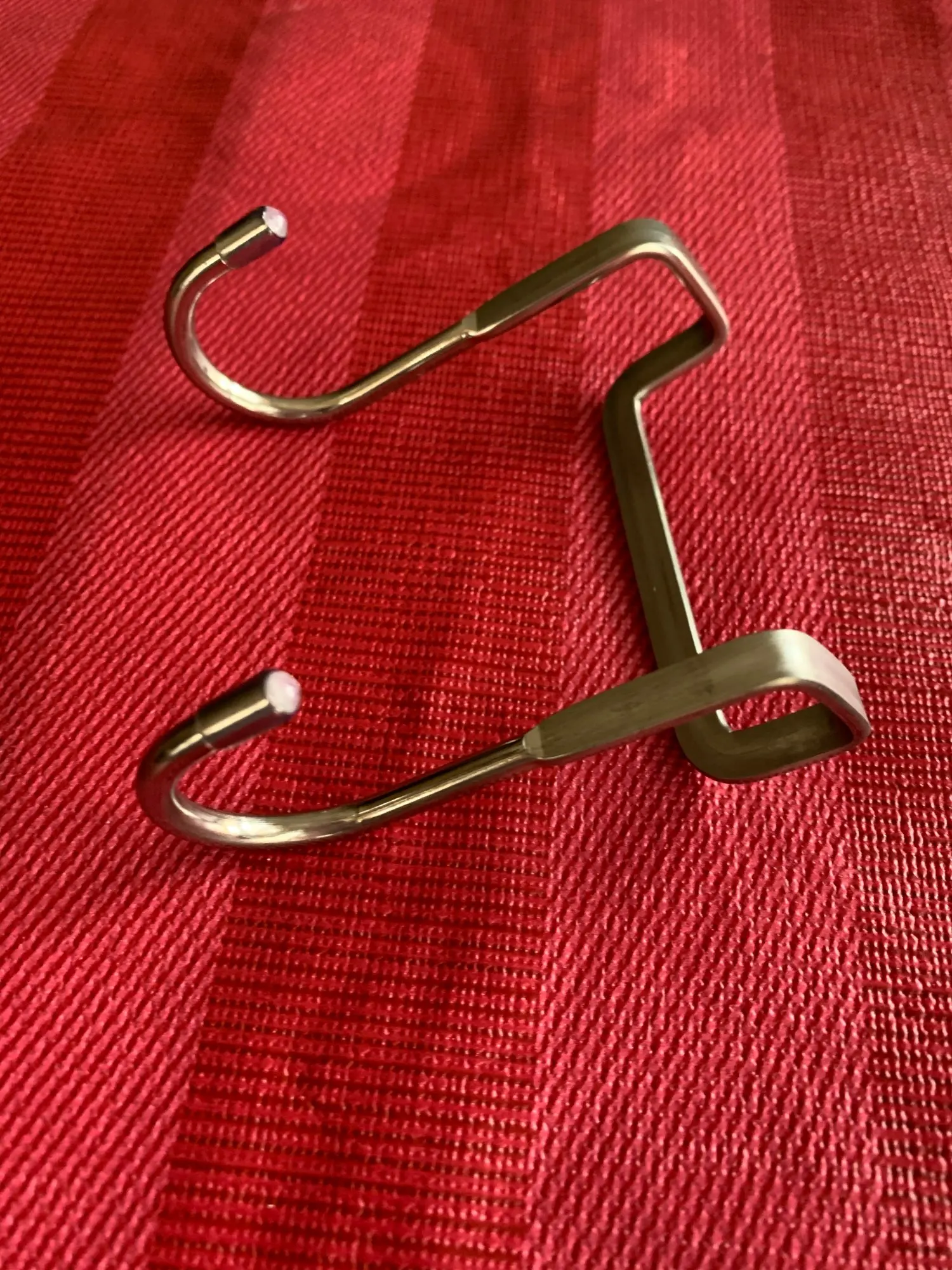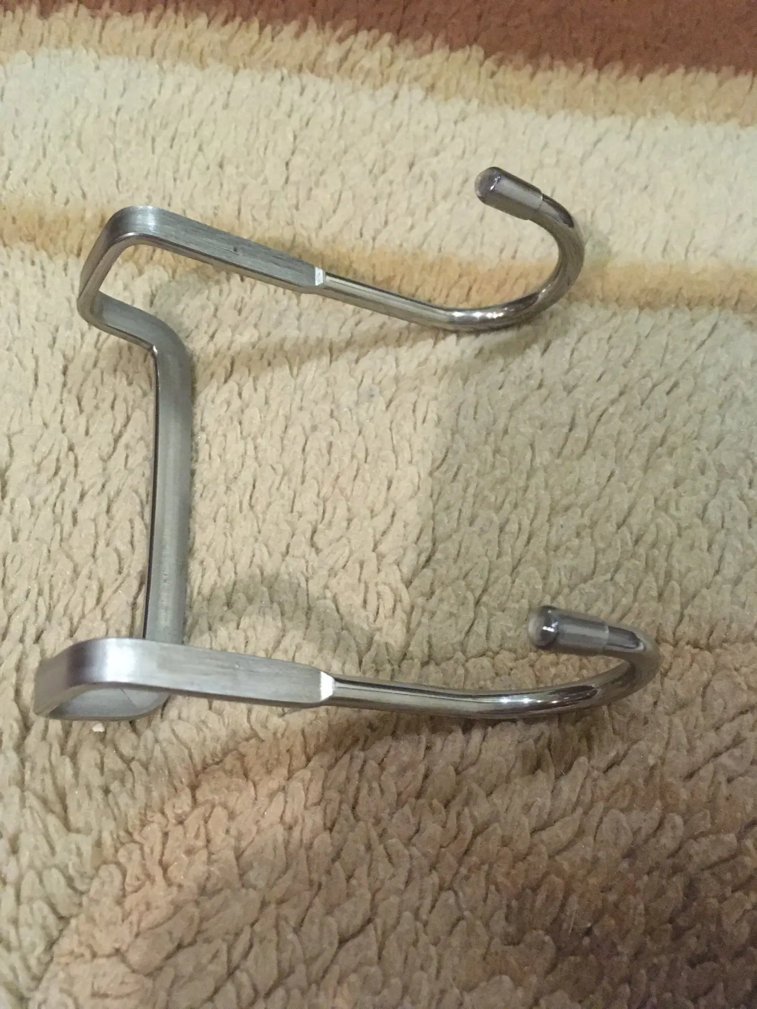 Крючок хорошего качества. Похоже, что из нержавеющей стали - проверял магнитом. Силиконовые колпачки на кончиках крючков. Продавца и товар рекомендую. Спасибо!