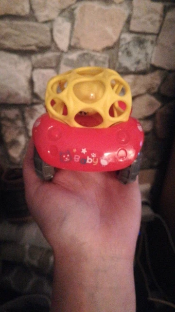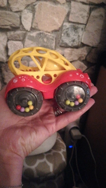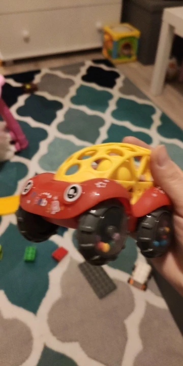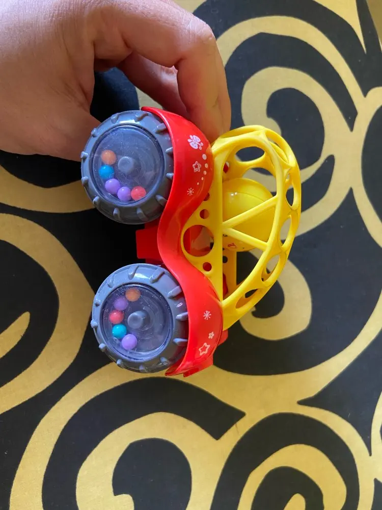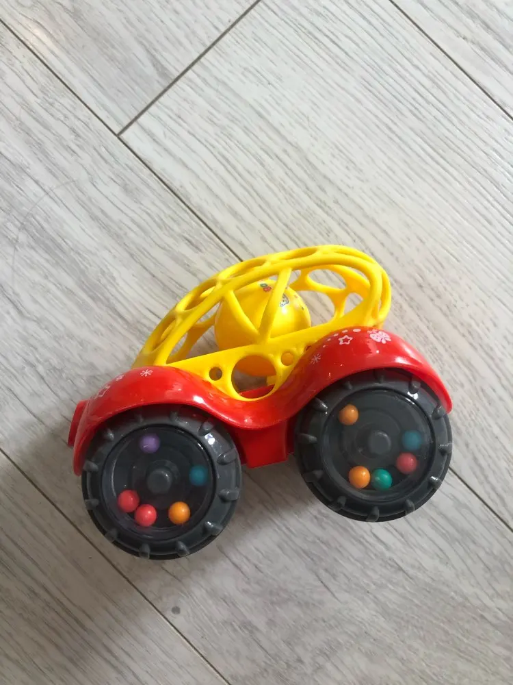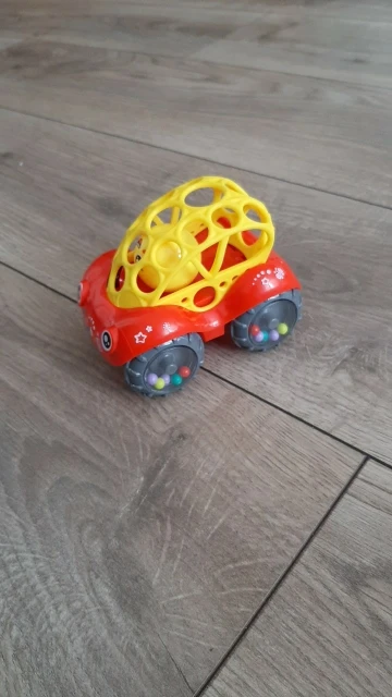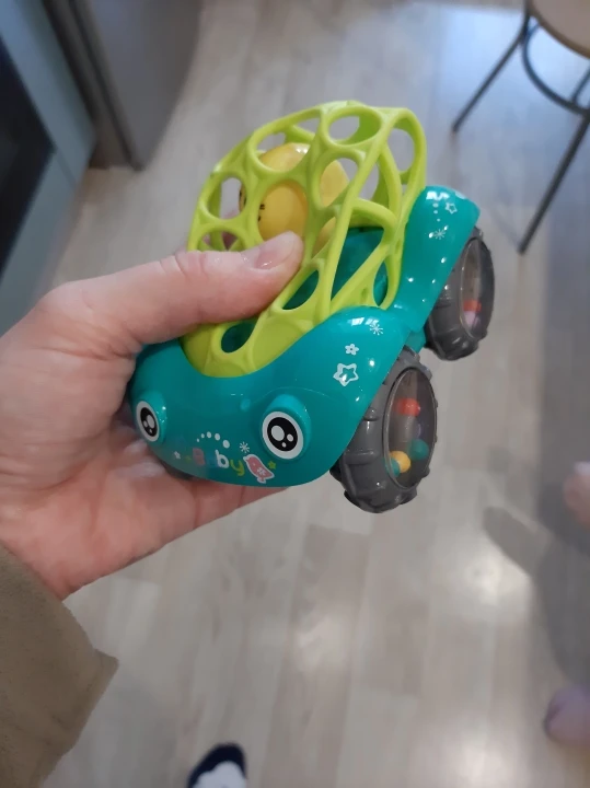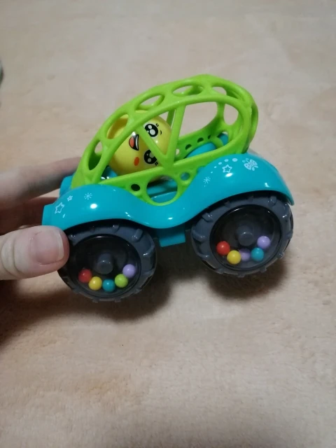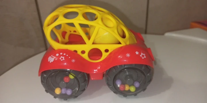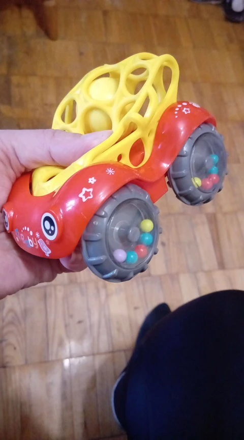 Mašīnīte izskatās tā lā uz фотографы. Mašīnas korpusa sarkanā daļa plastmasīga, dzeltenű gumijveida, kas ļauj mazulima to labi satvert A toēlēties. Mašīnas grabuļi ļoti skaļi dis Esmu apmierināta ar sūtījumu. Saņēmu arī salīdzinoši ātri.