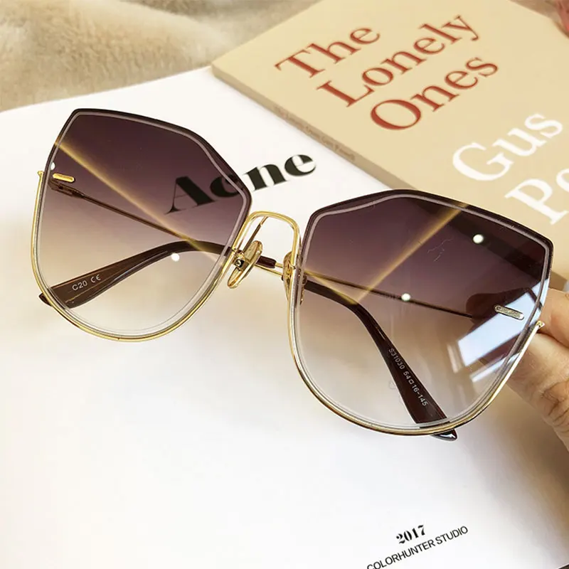 Женские солнцезащитные очки оверсайз коричневого цвета, брендовые дизайнерские градиентные зеленые очки в стиле ретро, большие оправы, солнцезащитные очки UV400, 2019
