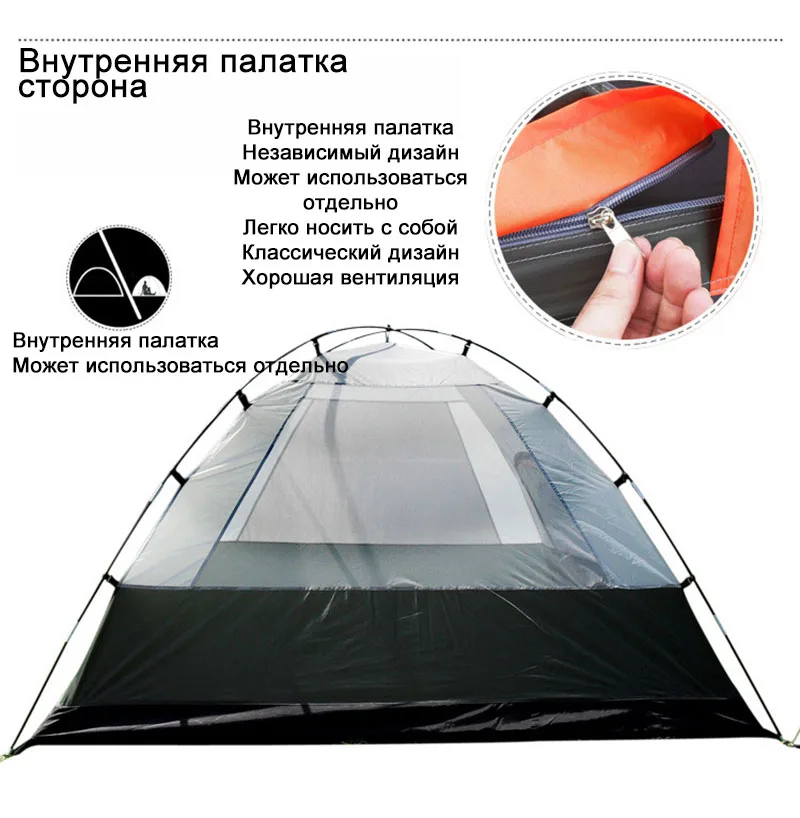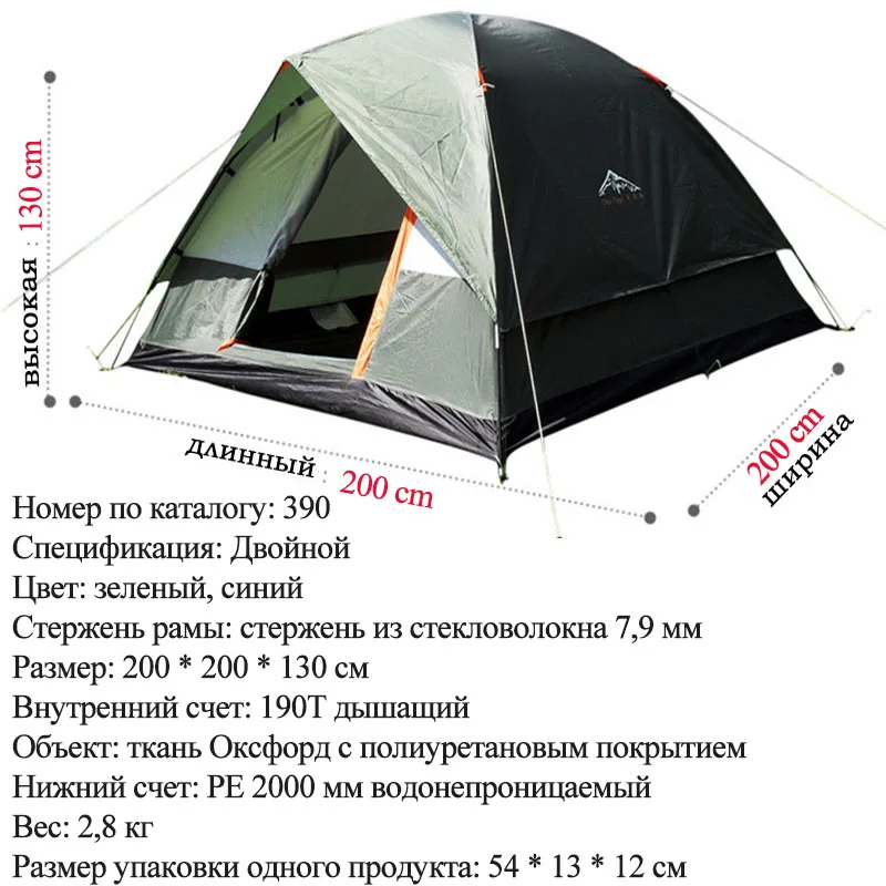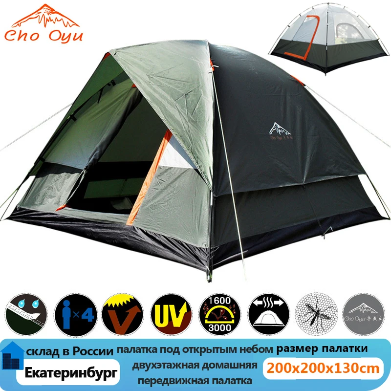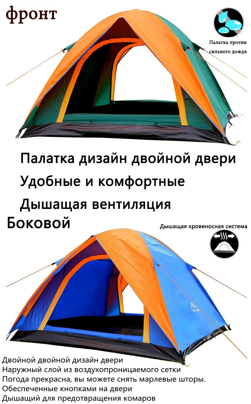 Палатка для кемпинга, двухслойная водонепроницаемая, на 3-4 человек