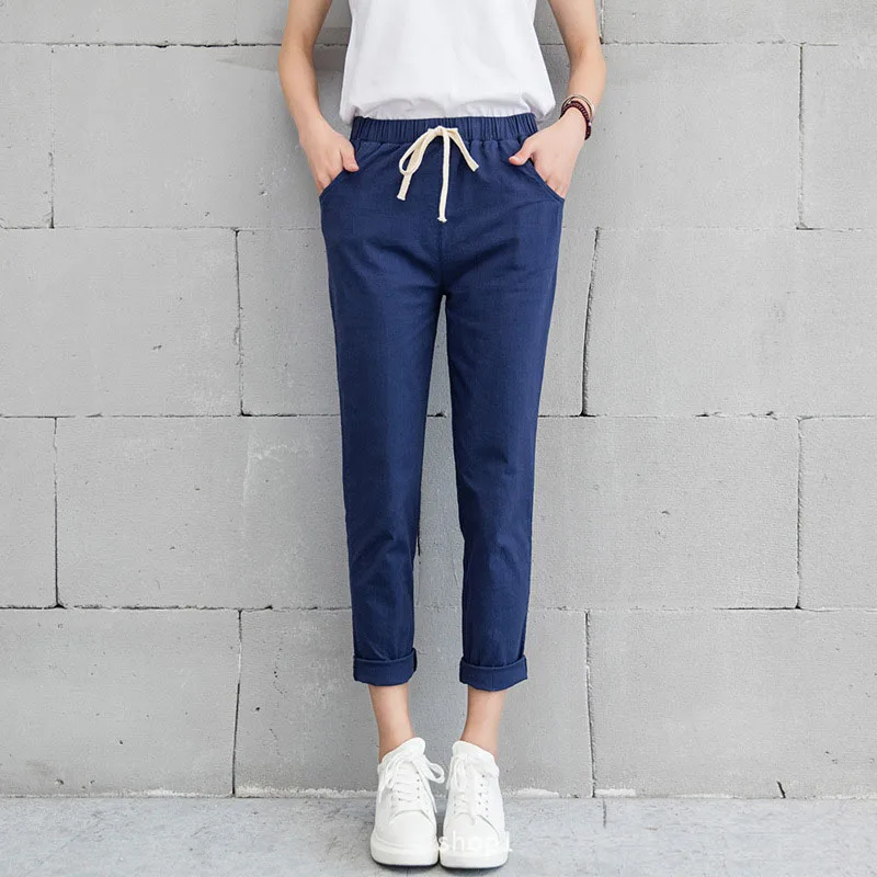 Брюки-шаровары женские, из хлопка и льна, повседневные, длиной до щиколотки, мягкие, прямые, офисные, черные, для весны