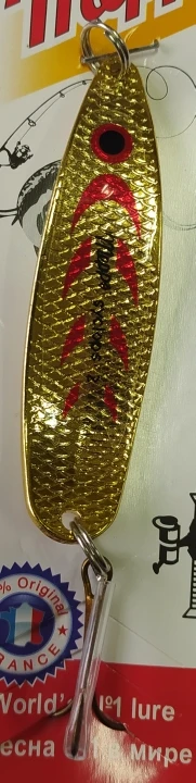 Блесна покрашена а рисунок на ней наклейка которая наполовину отклеена и назад не прилипает. Но за эту цену сойдёт. Почта России очень долго доставляла
