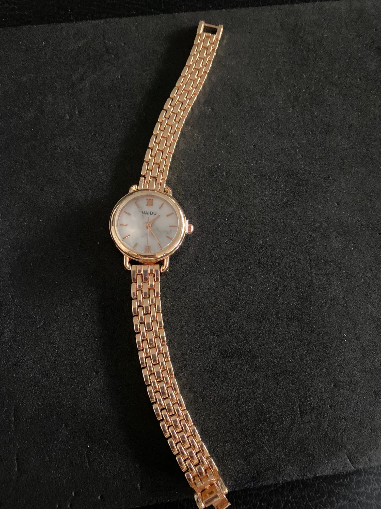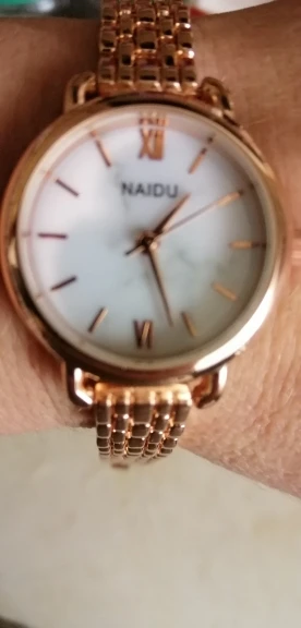 Доставка не долгая, товар качественный, очень аккуратненько всё сделано и красивенько. На фото может не видно, но часики не желтого цвета, а уходят немного в розовое золото, это было неожиданностью. На фото видно, что браслет нужно уменьшить, но не знаю получится или нет, напишу позднее. С продавцом не было необходимости общаться.