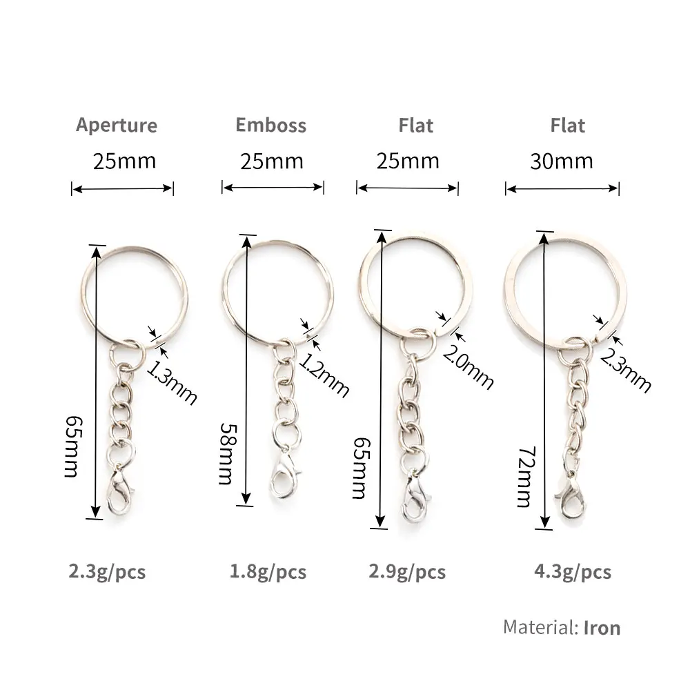 20100 шт., никелевые брелки для ключей, 2530 мм