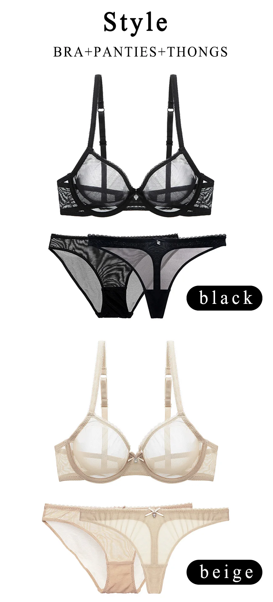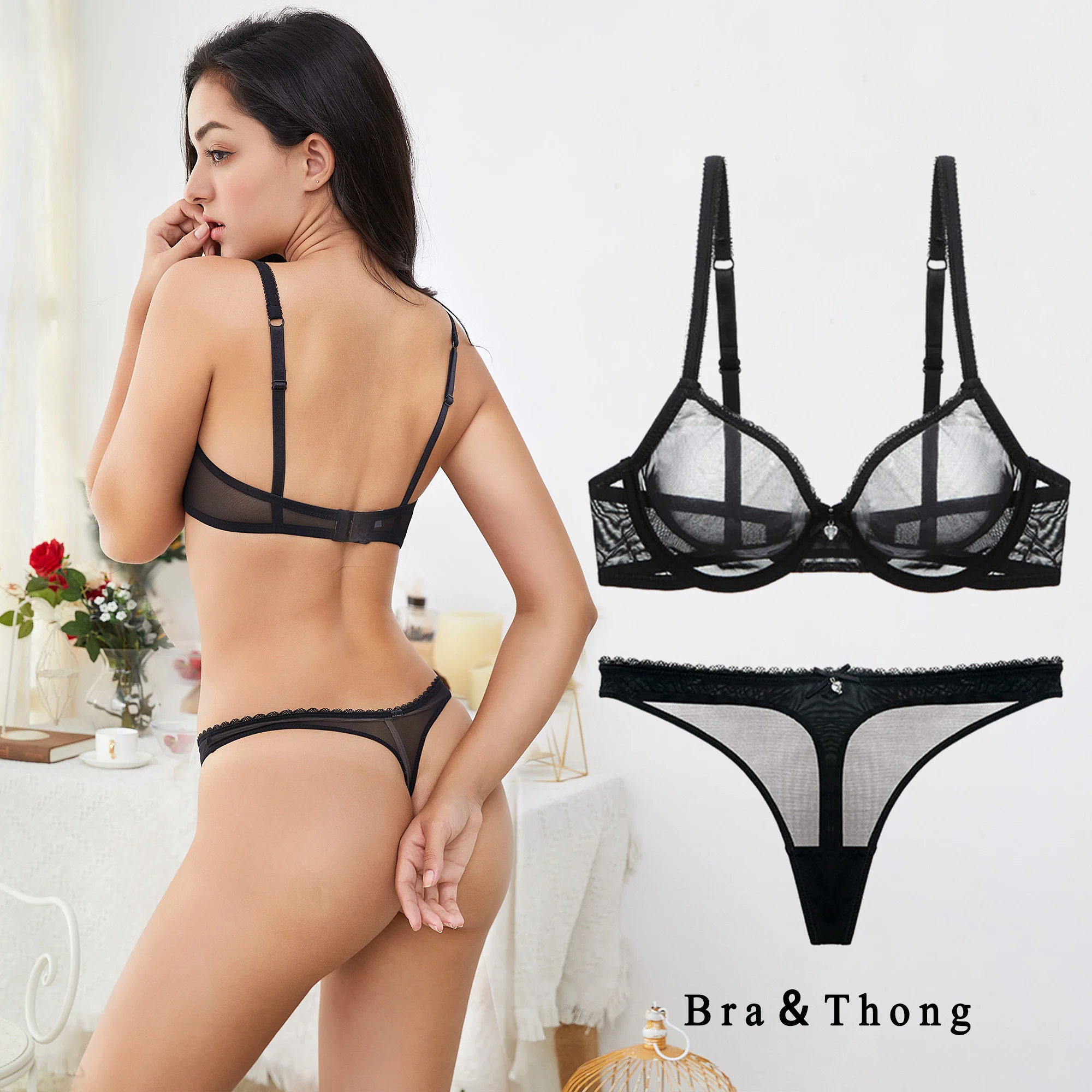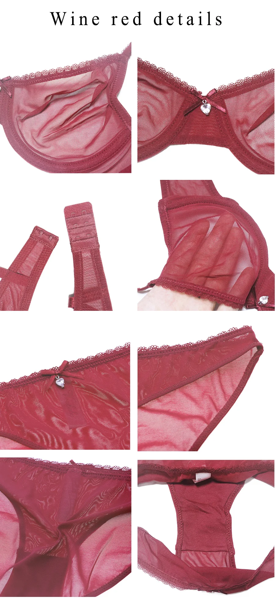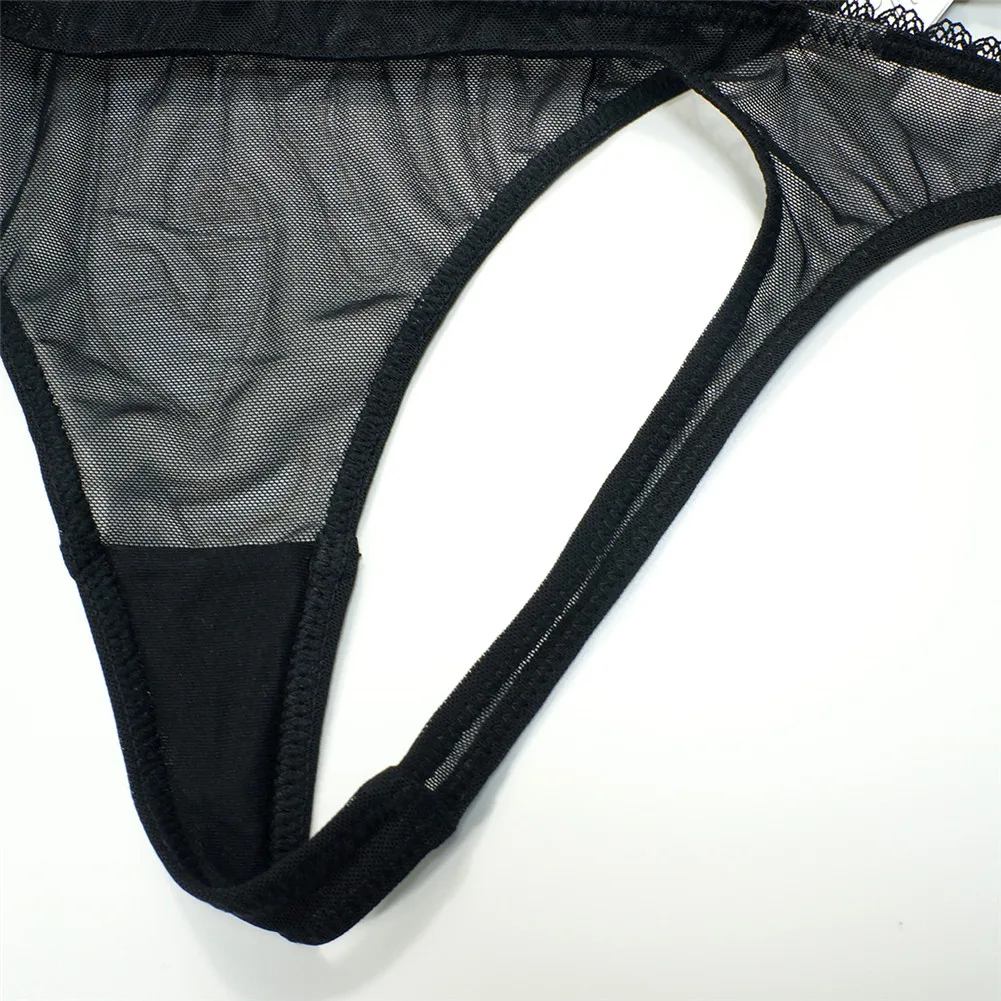 Комплект нижнего белья из бюстгальтера, трусиков, стрингов, сетчатого кружева размера плюс