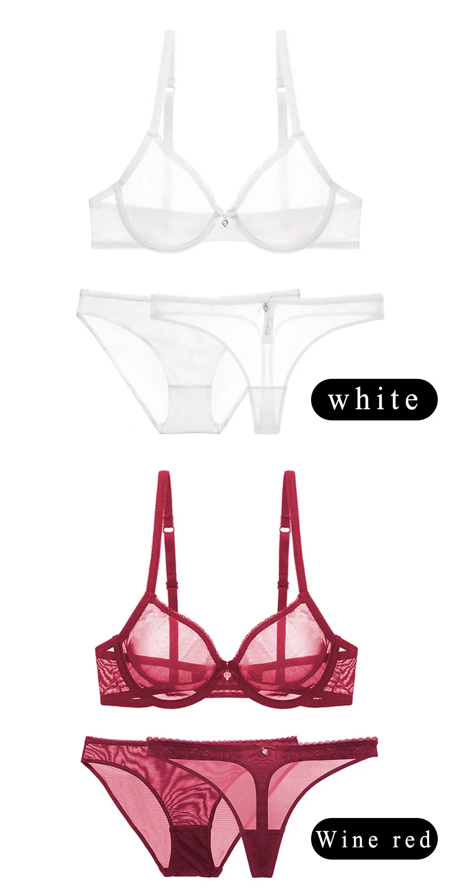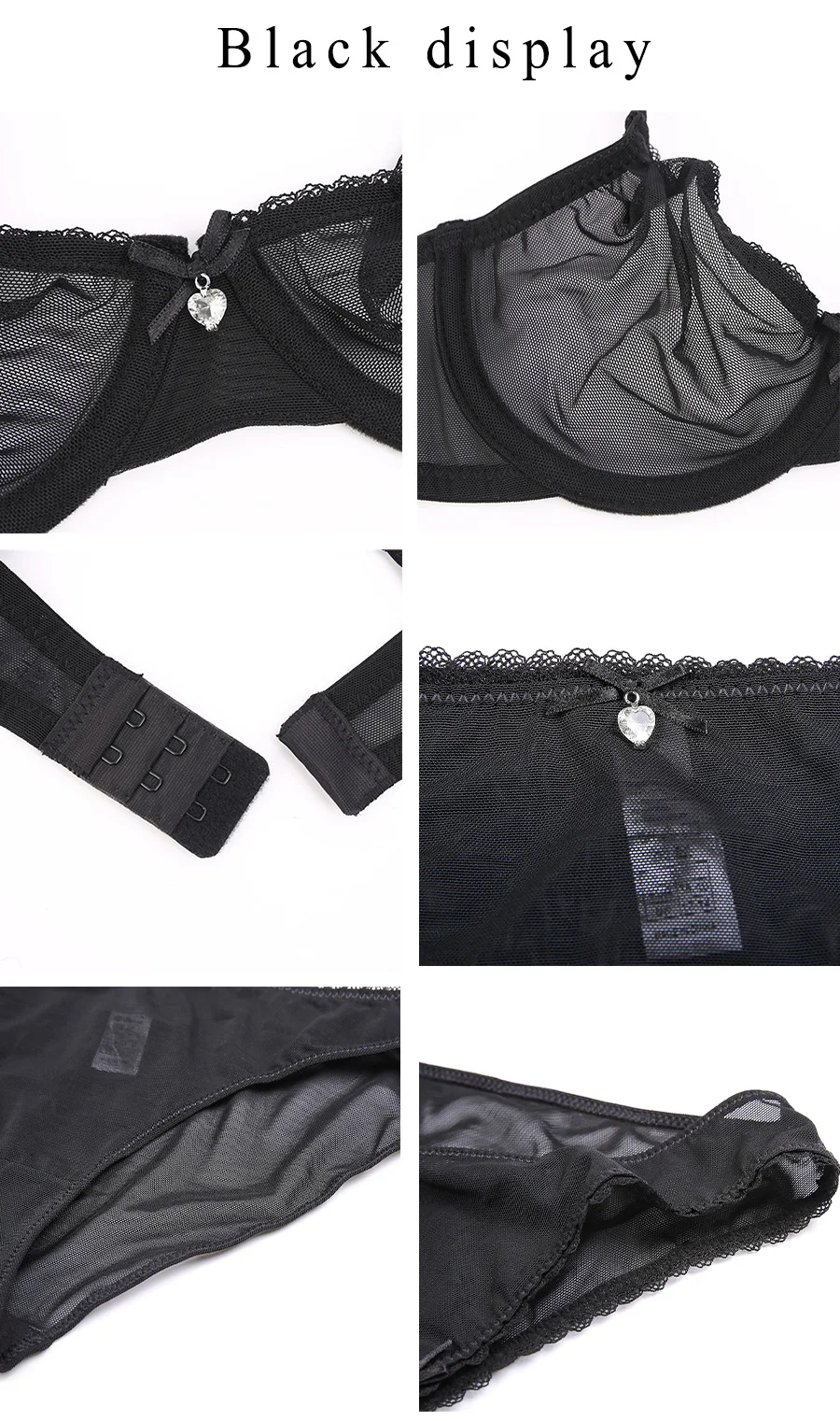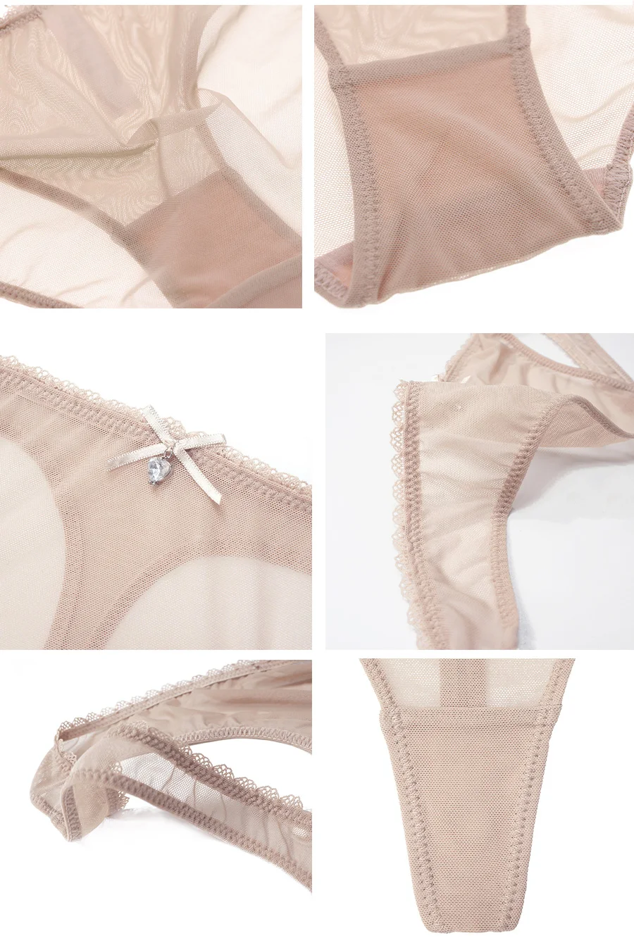 Комплект нижнего белья из бюстгальтера, трусиков, стрингов, сетчатого кружева размера плюс