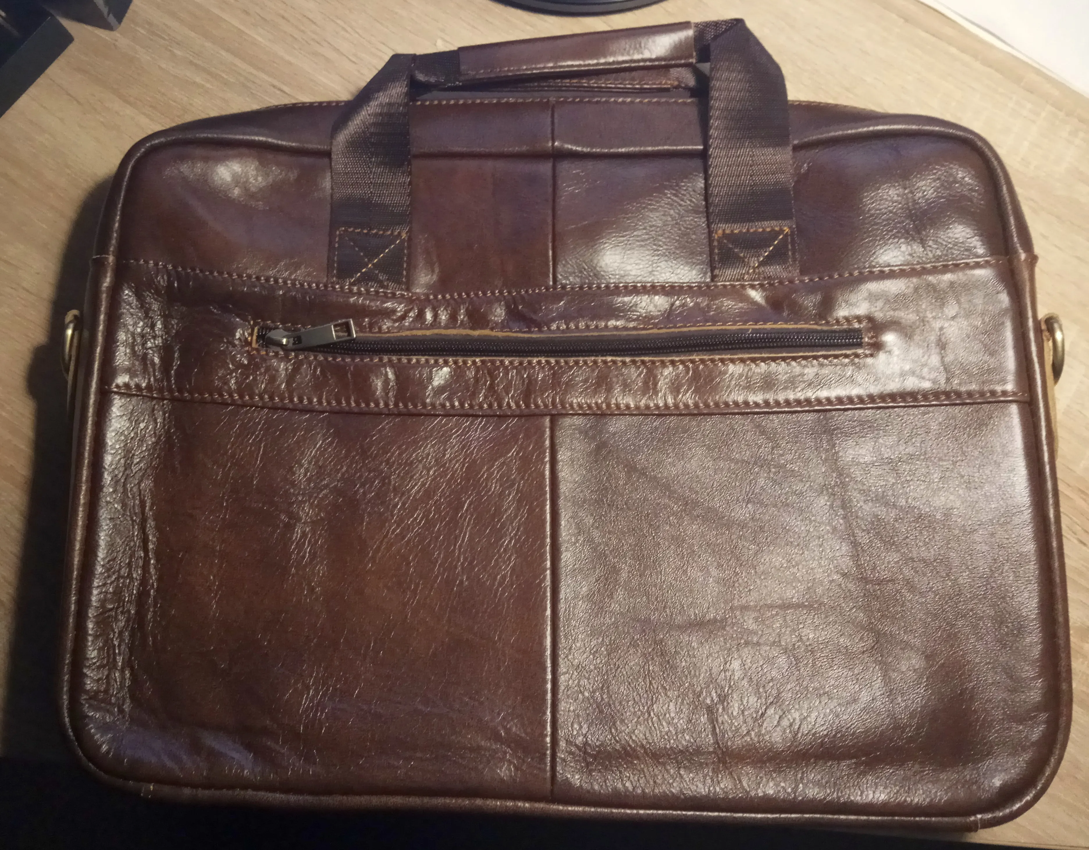 Быстрая доставка (две недели), хорошее качество (на кожу особо не похоже, но я и не разбираюсь. мягкая приятная, еще пропиткой обработай для сохранности на морозе). Внутри два больших отсека (для ноута 15д с липучкой и документов а4, свободно) и три отсека поменьше один из которых на молнии. По цвету, светлее чем на фото в описании, но я на это и расчитывал. форму не держит (как на фото), но норм, так как благодаря этому сумка не толстая (как на фото). Так что все гуд. Остальное покажет время. Спасибо!