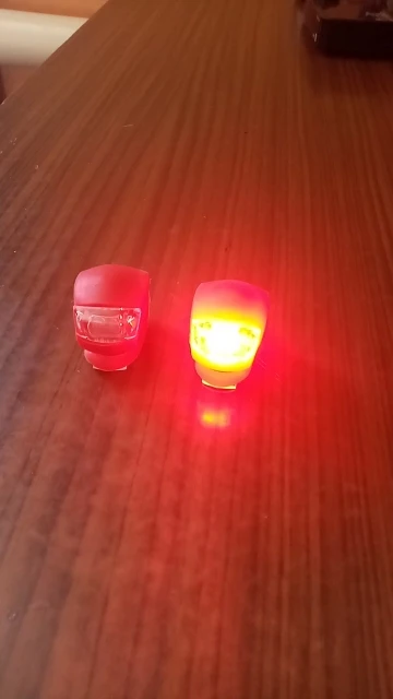 Светодиод оказывается на перед, светит очень ярко, хватает на два дня в включеном режиме, в комплекте батарейка