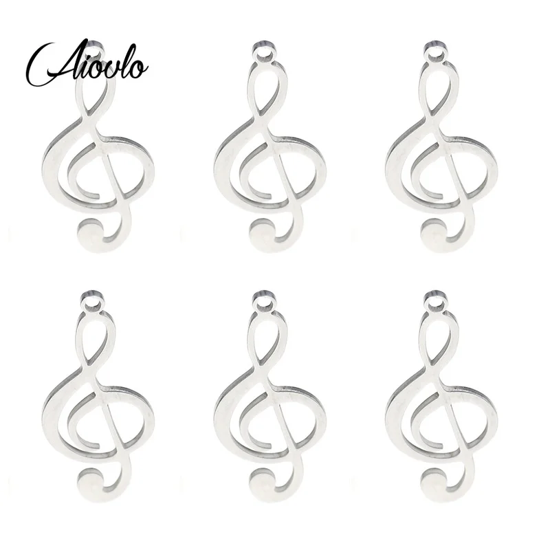Название: Aiovlo 10 шт./лот 12x25 мм подвеска из нержавеющей стали с музыкальными нотами, подвески для DIY браслета, ожерелья, фурнитура, аксессуары для изготовления ювелирных изделий