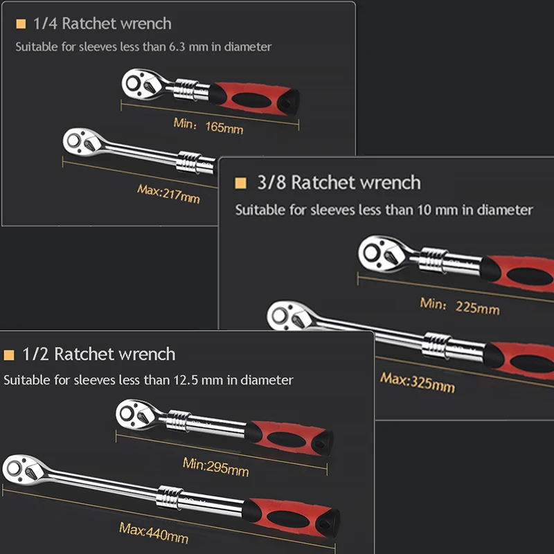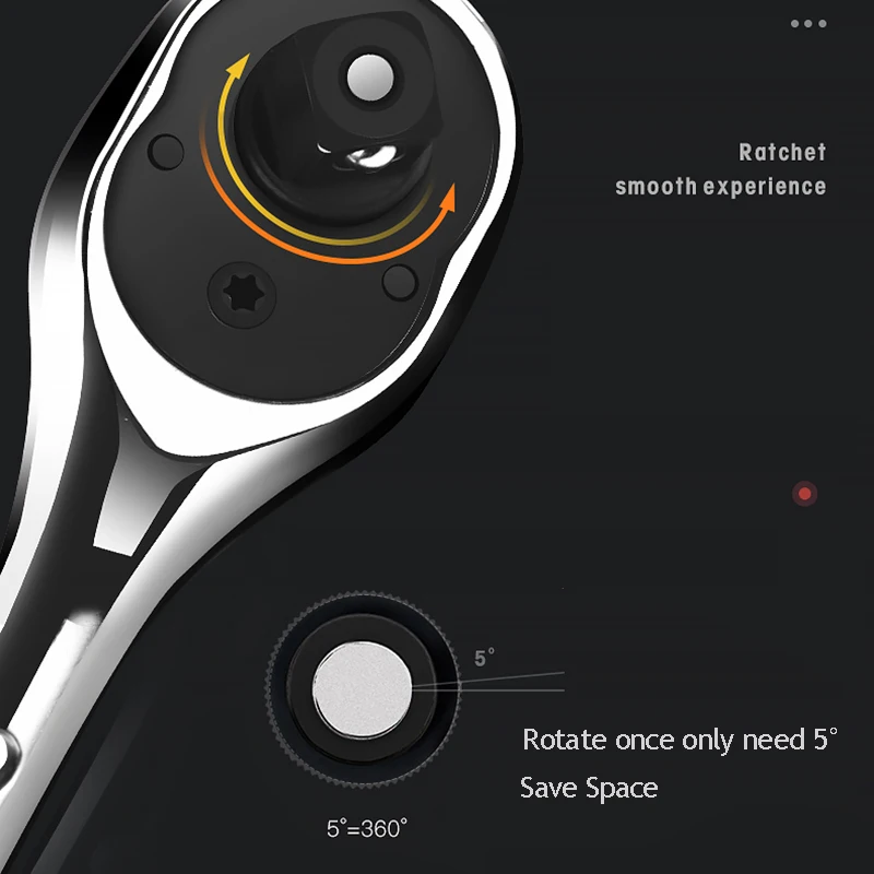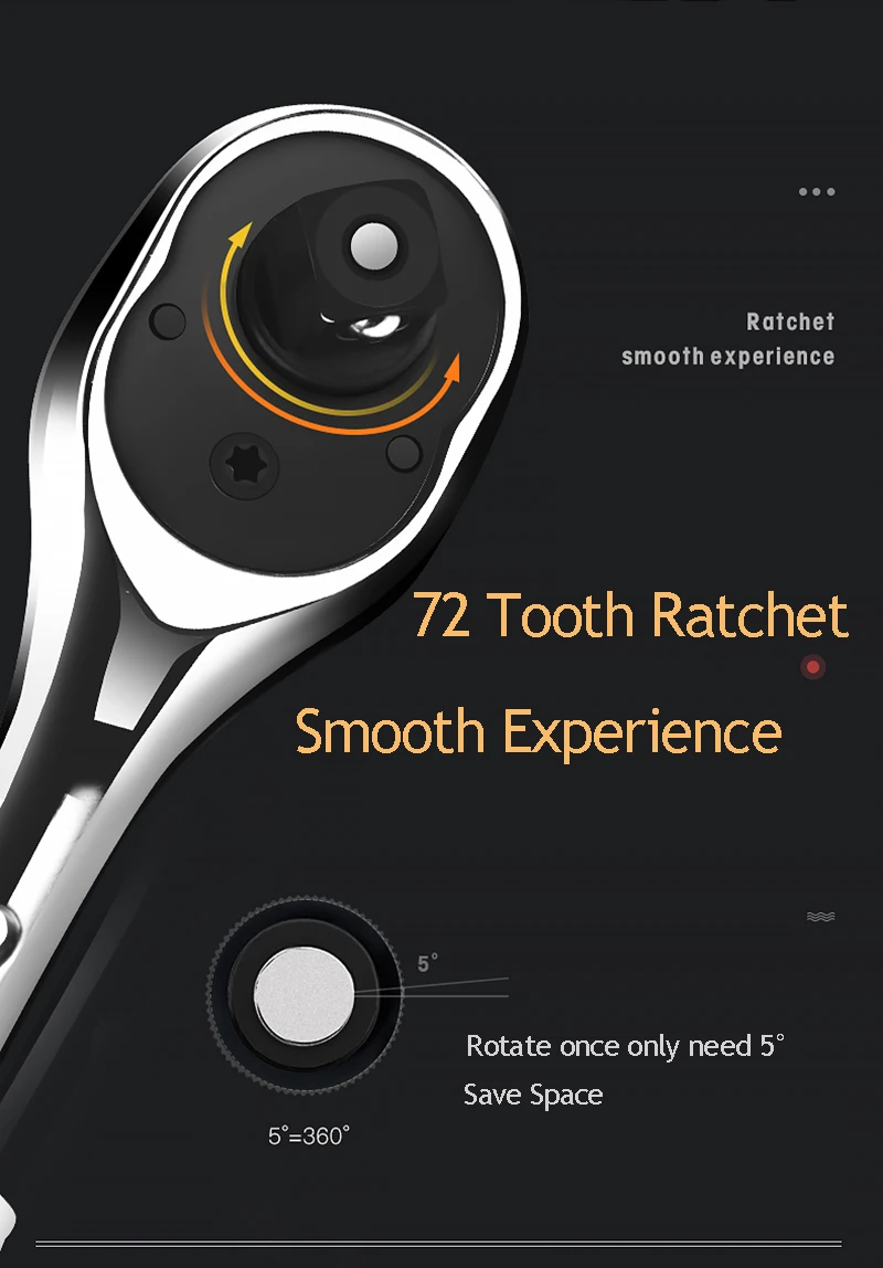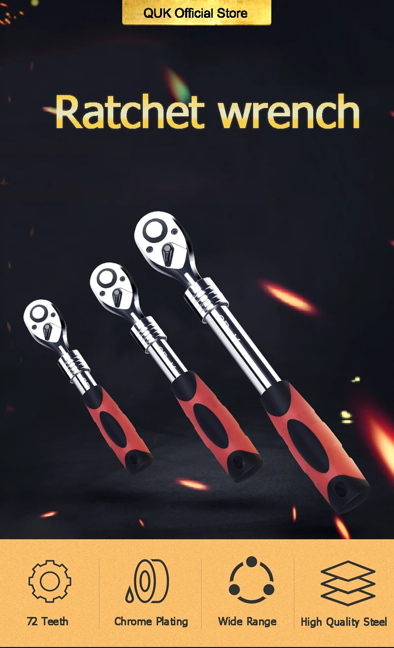 Гаечный ключ QUK 14 дюйма, 38 дюйма, 12 дюйма, автоматический двухсторонний ключ с трещоткой с высоким крутящим моментом, Cr-V, гибкое гнездо, регулируемый гаечный ключ с 72 зубцами