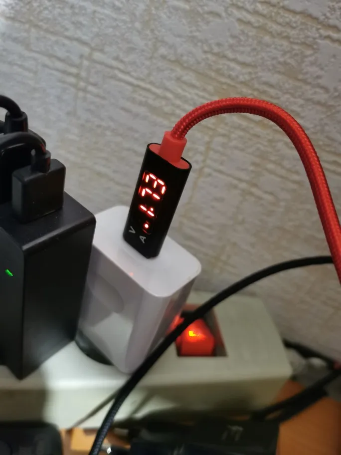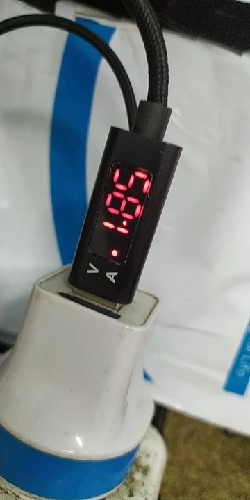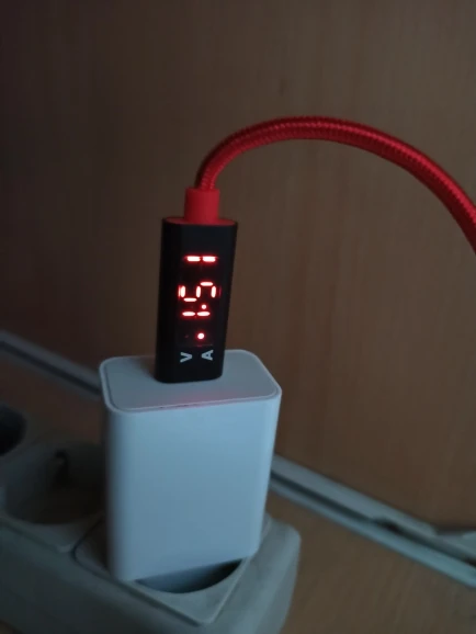 Хорошая вещь. Напряжение зарядки на телефоне Samsung M31 показывает как и 5 вольт, так и 9 вольт, когда оно есть. Очень удобно отслеживать зарядку телефона. По окончании зарядки, когда на телефоне 100% прекрасно видно, идёт или остановилась зарядка. При полной зарядке на индикаторах значения напряжения и тока по нулям.