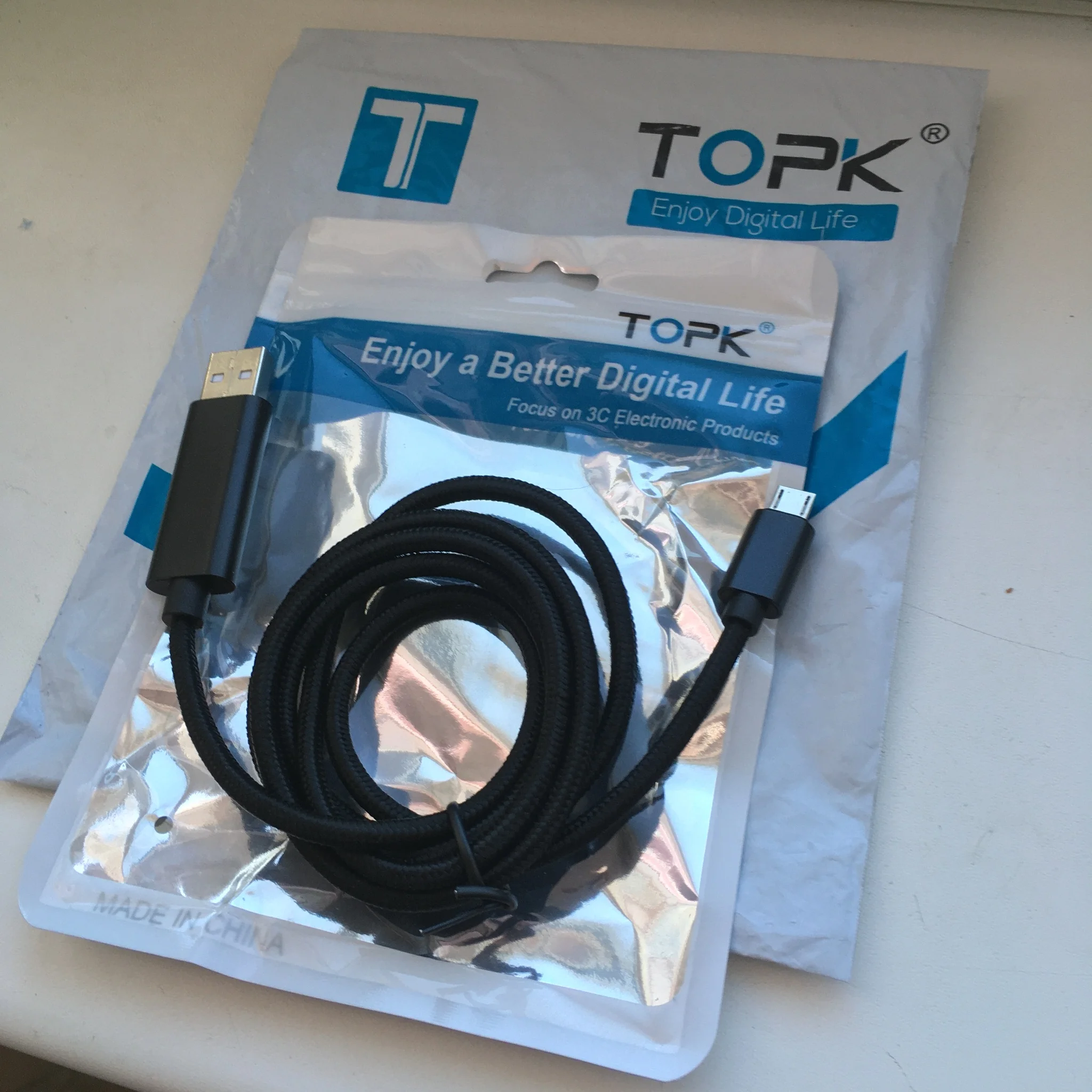 Отличный кабель, быстрая доставка. Хорошие материалы кабеля.В очередной раз убеждаюсь,что Topk хороший магазин. Отличные товары за не большую цену!