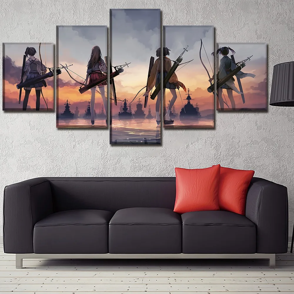 Современная живопись на холсте, настенная художественная структура, декор для спальни, гостиной, Постер, 5 панелей, аниме, коллекция кантай, Модульная картина