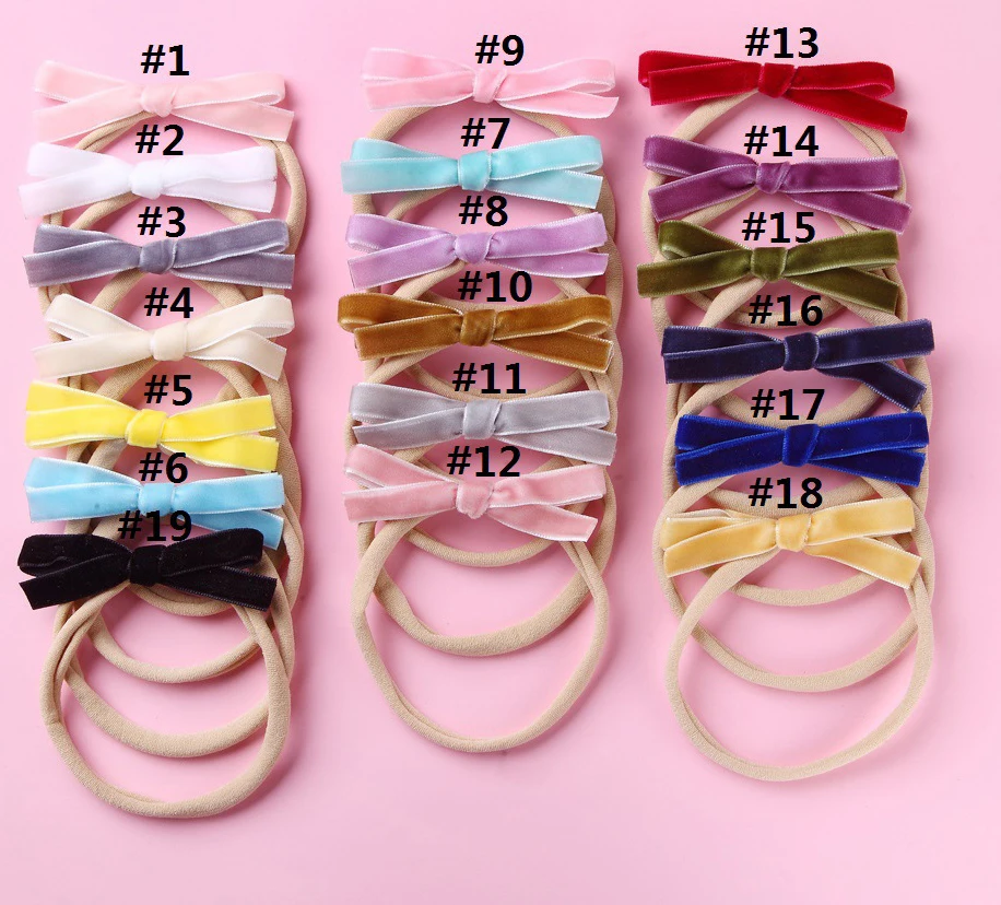 Бархатная повязка на голову MengNa, повязка на голову с бантом для новорожденных, нейлоновые повязки на голову для девочек, детские праздничные подарочные аксессуары для волос, 36 шт.лот, 2019