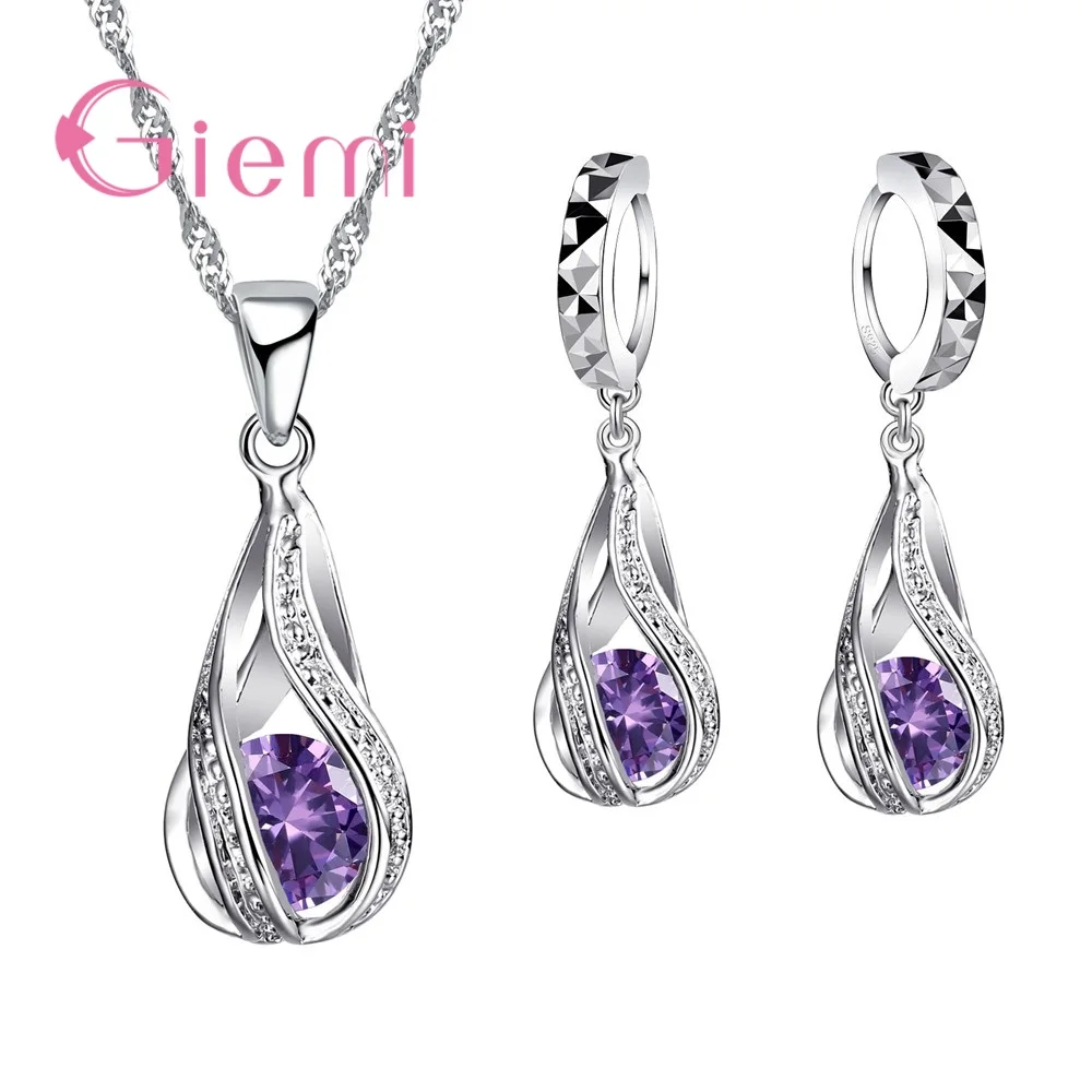 Цепочка с кулоном и серьги-кольца из серебра 925 пробы, 8 цветов