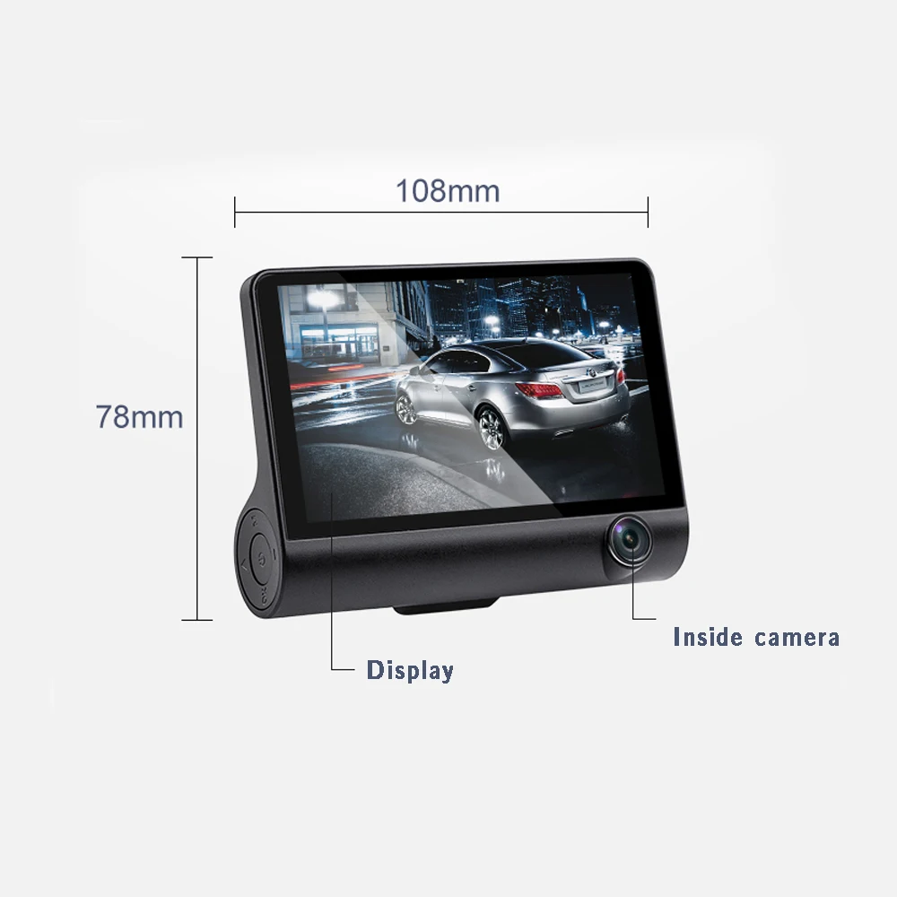 Автомобильный видеорегистратор с 3 объективами, Full HD 1080P, 4,0 дюйма, ЖК-экран, угол обзора 170 градусов, камера заднего вида, акселерометр, Автомобильный видеорегистратор dfdf