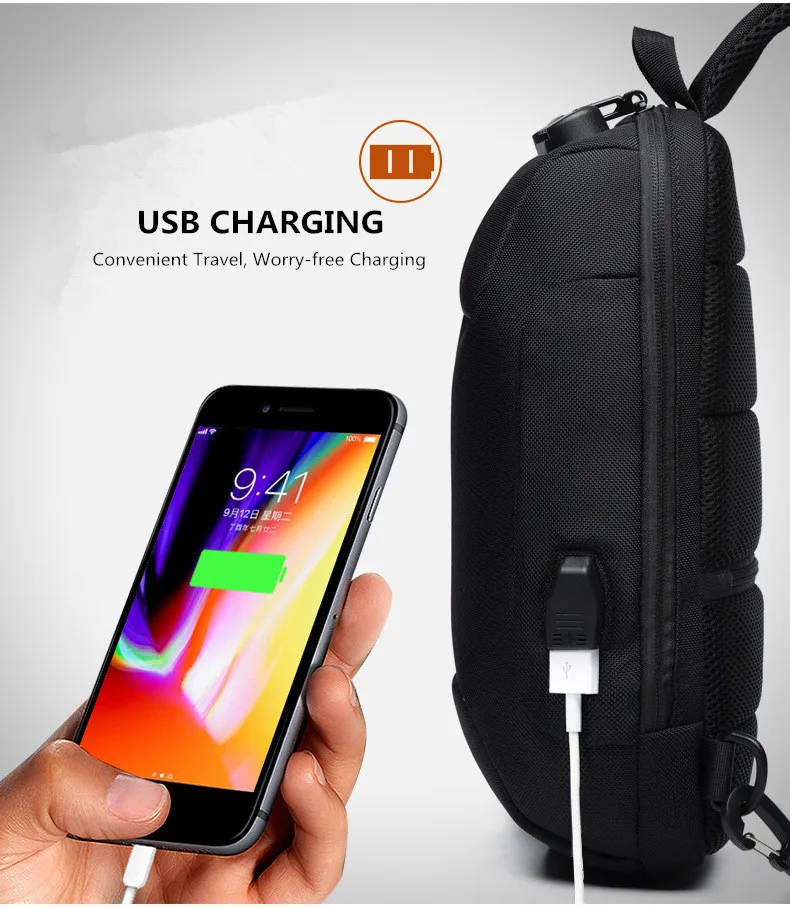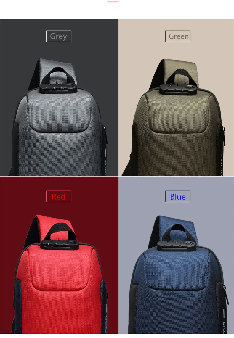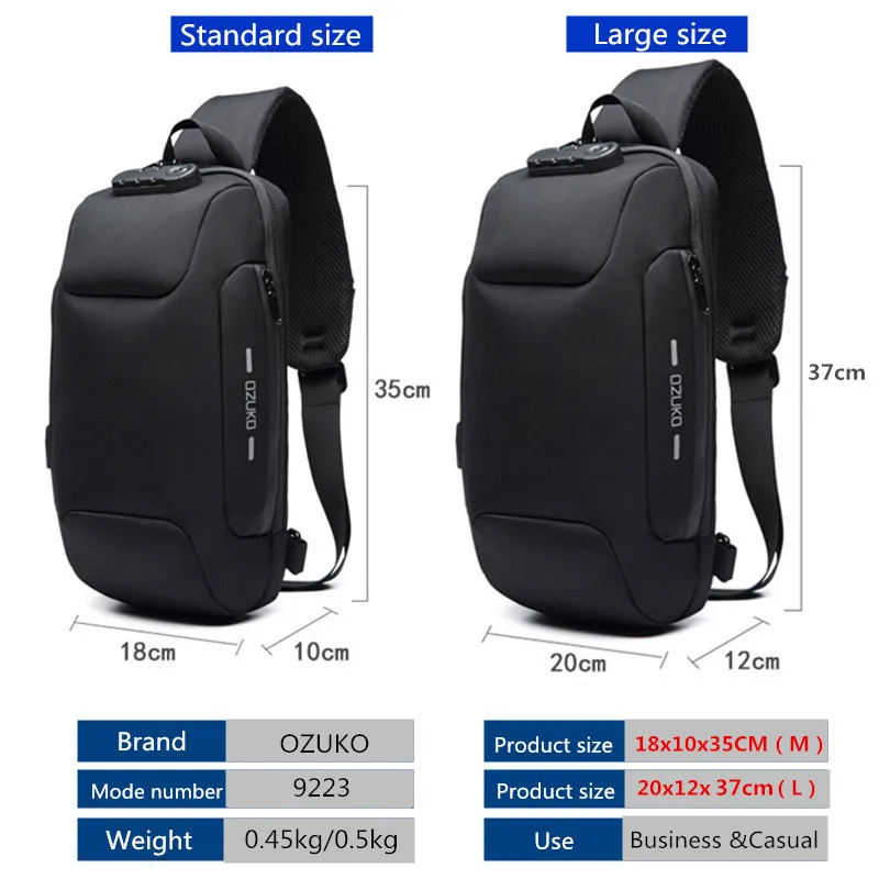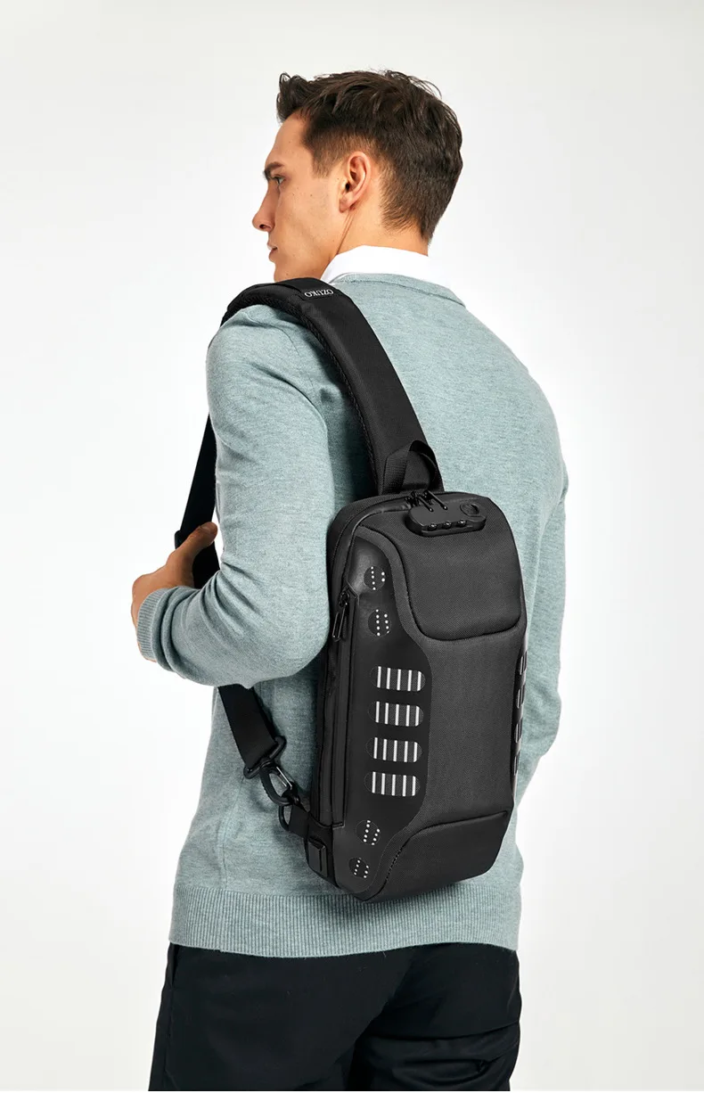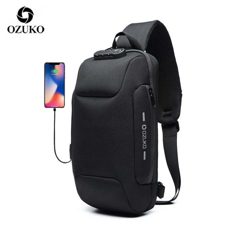 Сумка через плечо OZUKO для мужчин, Многофункциональный мессенджер на ремне с защитой от кражи, водонепроницаемый нагрудной мешок для коротких поездок