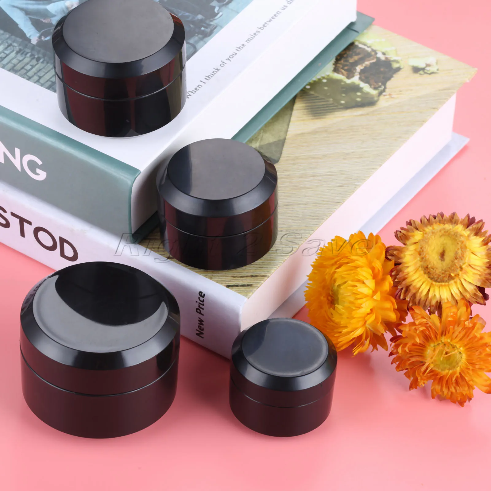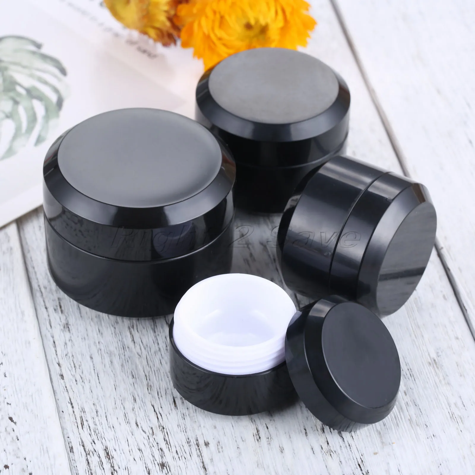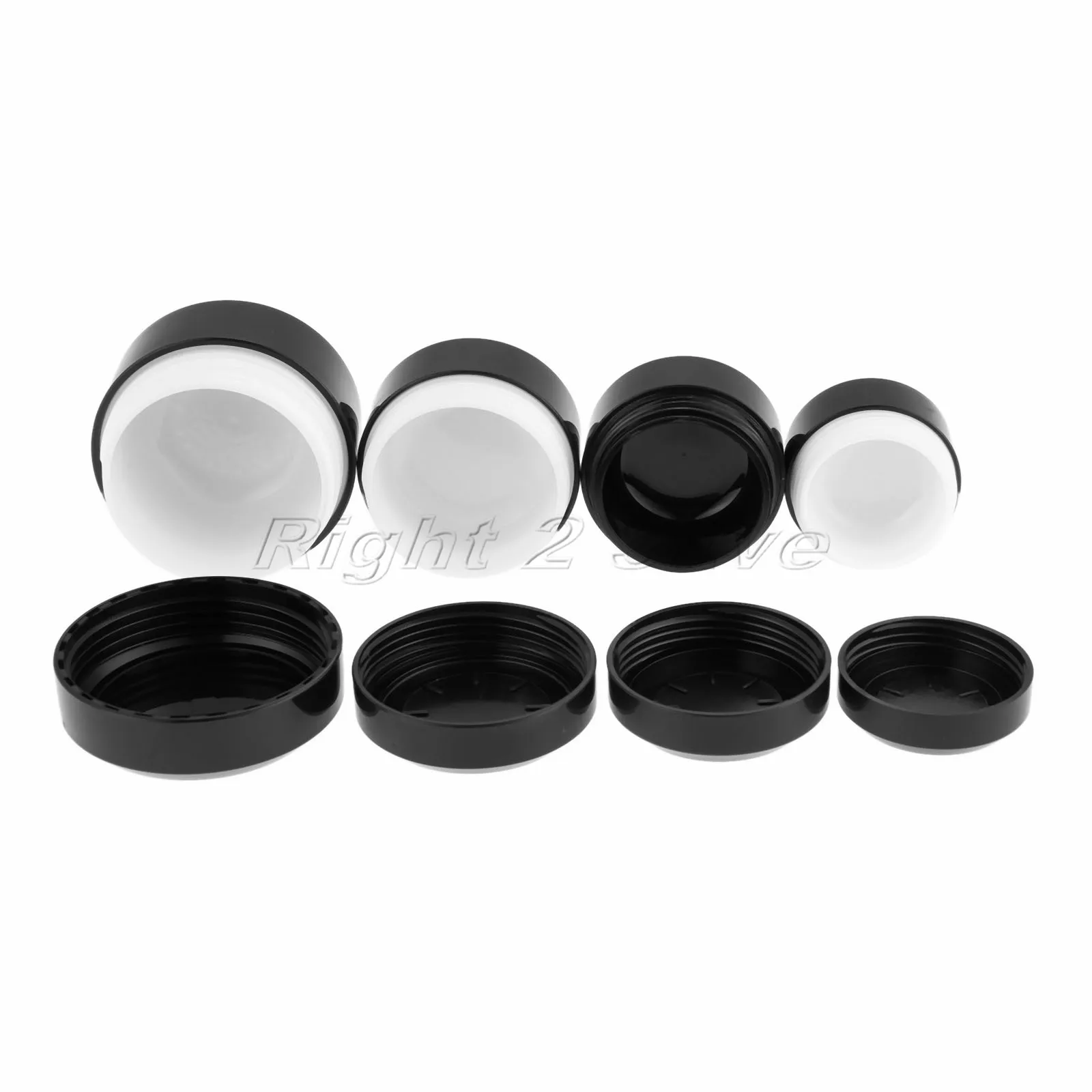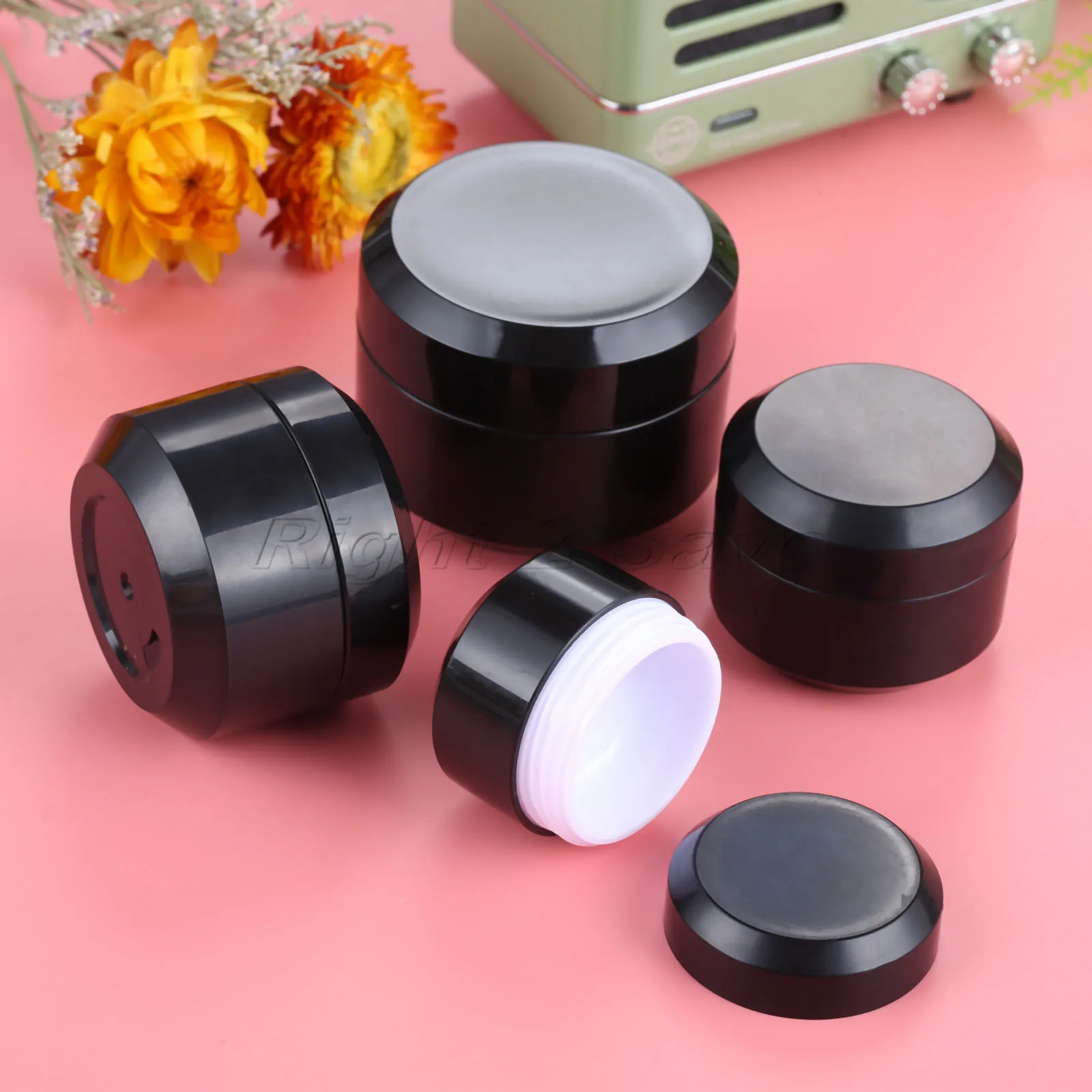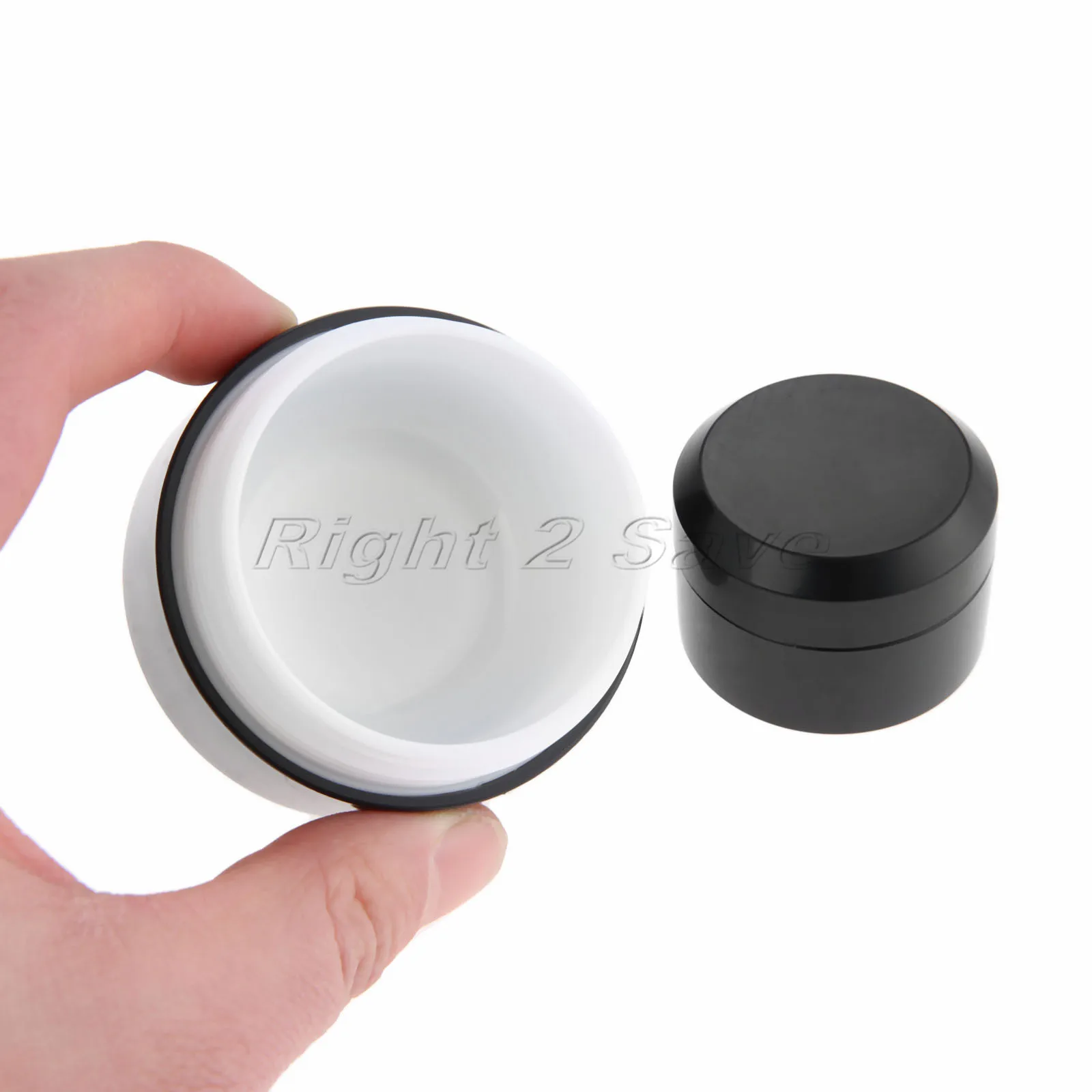 Спецификация:Цвет: черныйМатериал: пластикЕмкость: 5/10/15/30 гРазмер (диаметр * высота): ок. 37 мм * 29 мм 42 мм * 34 мм 47 мм * 36 мм 55 мм * 43 мм
