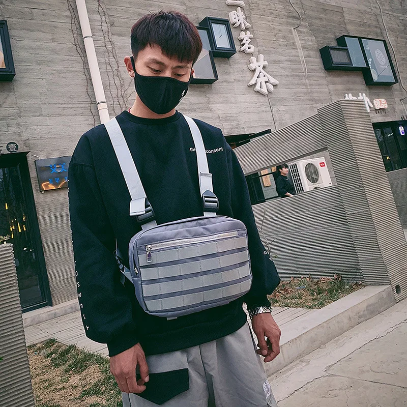Нагрудная сумка Kanye, для мужчин и женщин, в стиле милитари, Оксфорд, в уличном стиле, для Ipad, планшета, серый, черный, поясная сумка, 569
