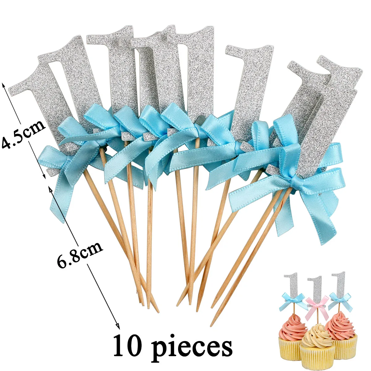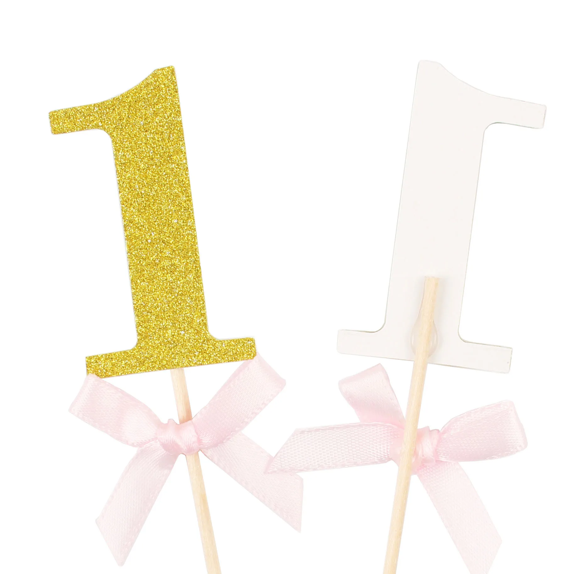 Бумажные топперы с блестками для первого дня рождения, 1 шт., украшения для первого дня рождения, для маленьких мальчиков и девочек, 10 шт.