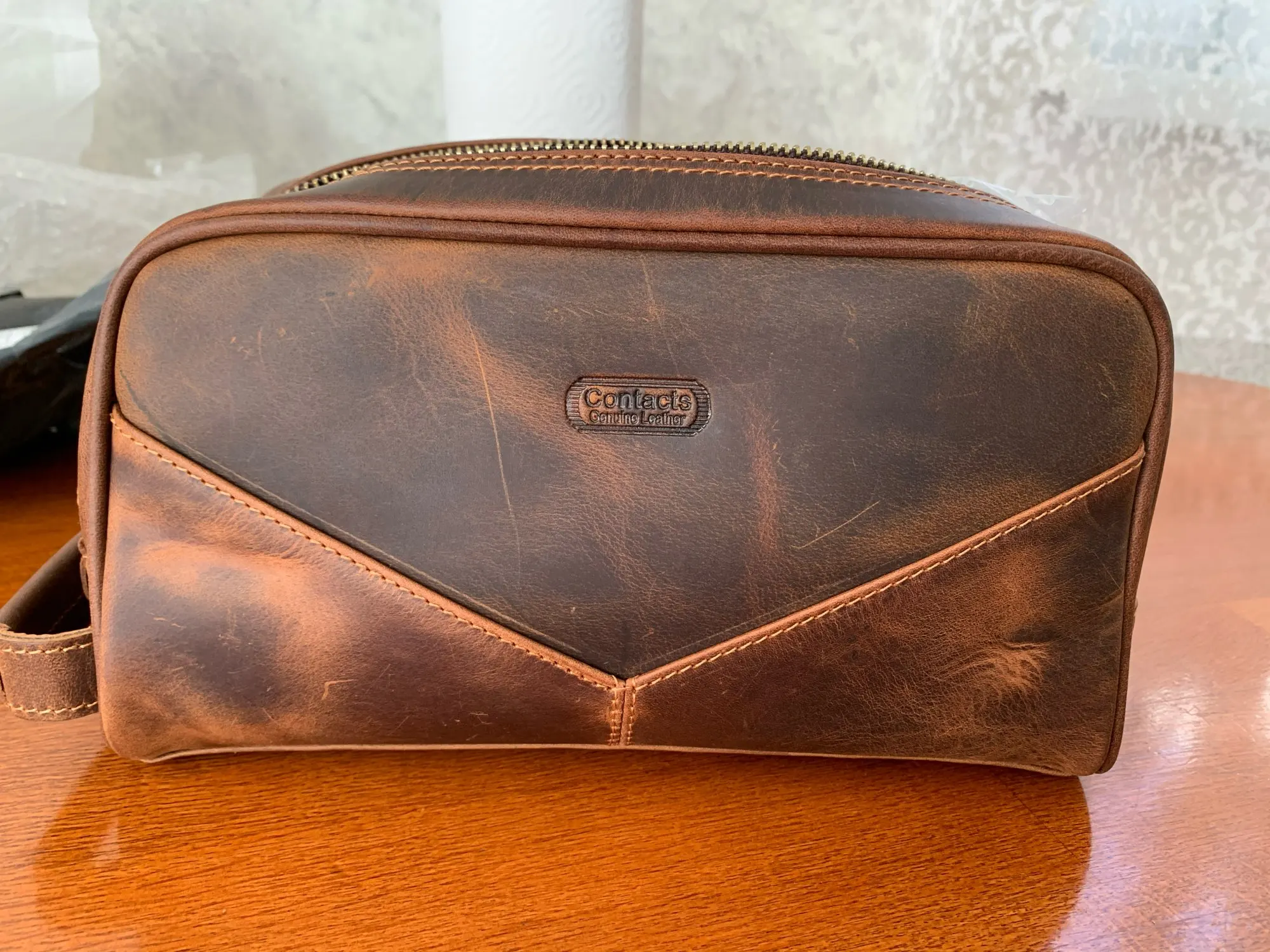 CONTACT'S Кожаная вместительная косметичка органайзер из натуральной кожи для коротких поездок двойная молния с карманом для телефона 2019