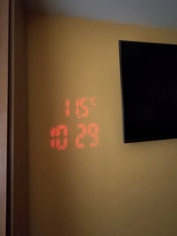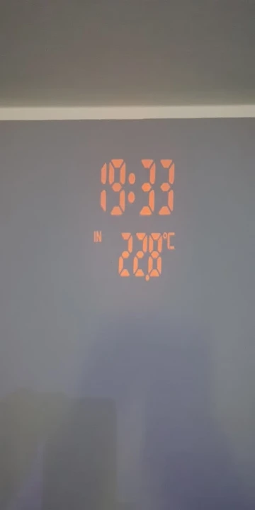 На первый взгляд, он кажется сделан из дешевого пластика, но он отлично работает! Я не использовал автоматическую синхронизацию времени в Испании, но его легко поместить вручную. Проекция на стене немного размыта по краям, но это не большая проблема. Хороший момент, когда проекция может быть изменена. Я доволен покупкой и буду покупать ее снова.
