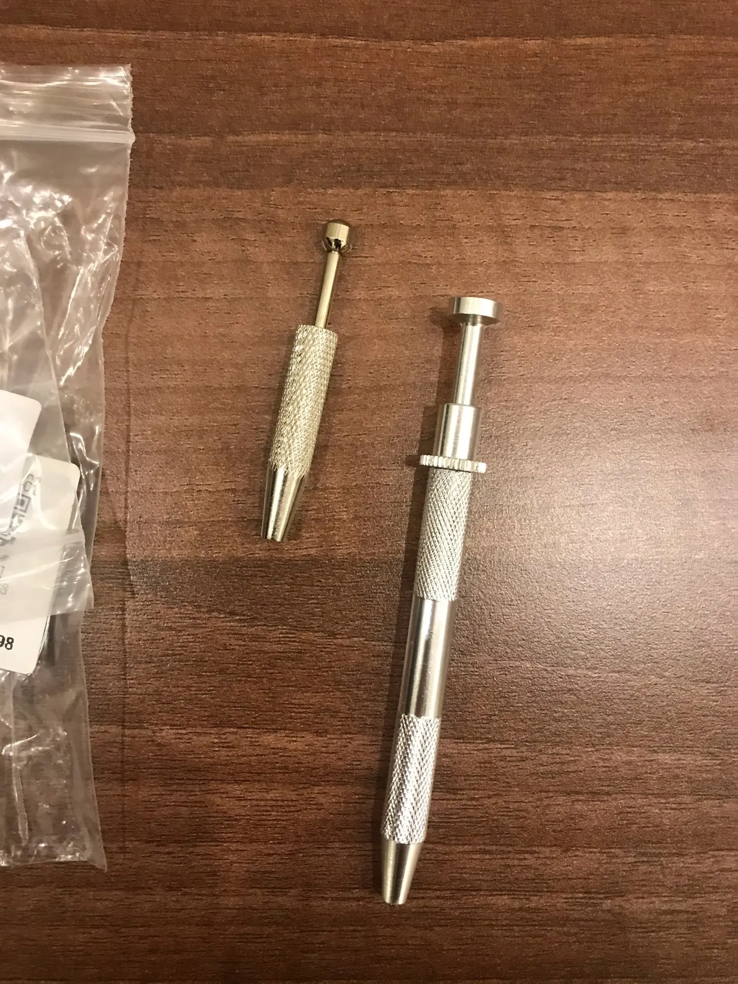 Доставка в Ташкент заняла 2 месяца. Хороший держатель. Захватывает даже очень маленькие насадки/бусины. Из недостатков: царапает насадки, если насадка не в виде шара, а, например, звёздочки, сердечка итп, то насадка проваливается, и вкручивание становится затруднительным.