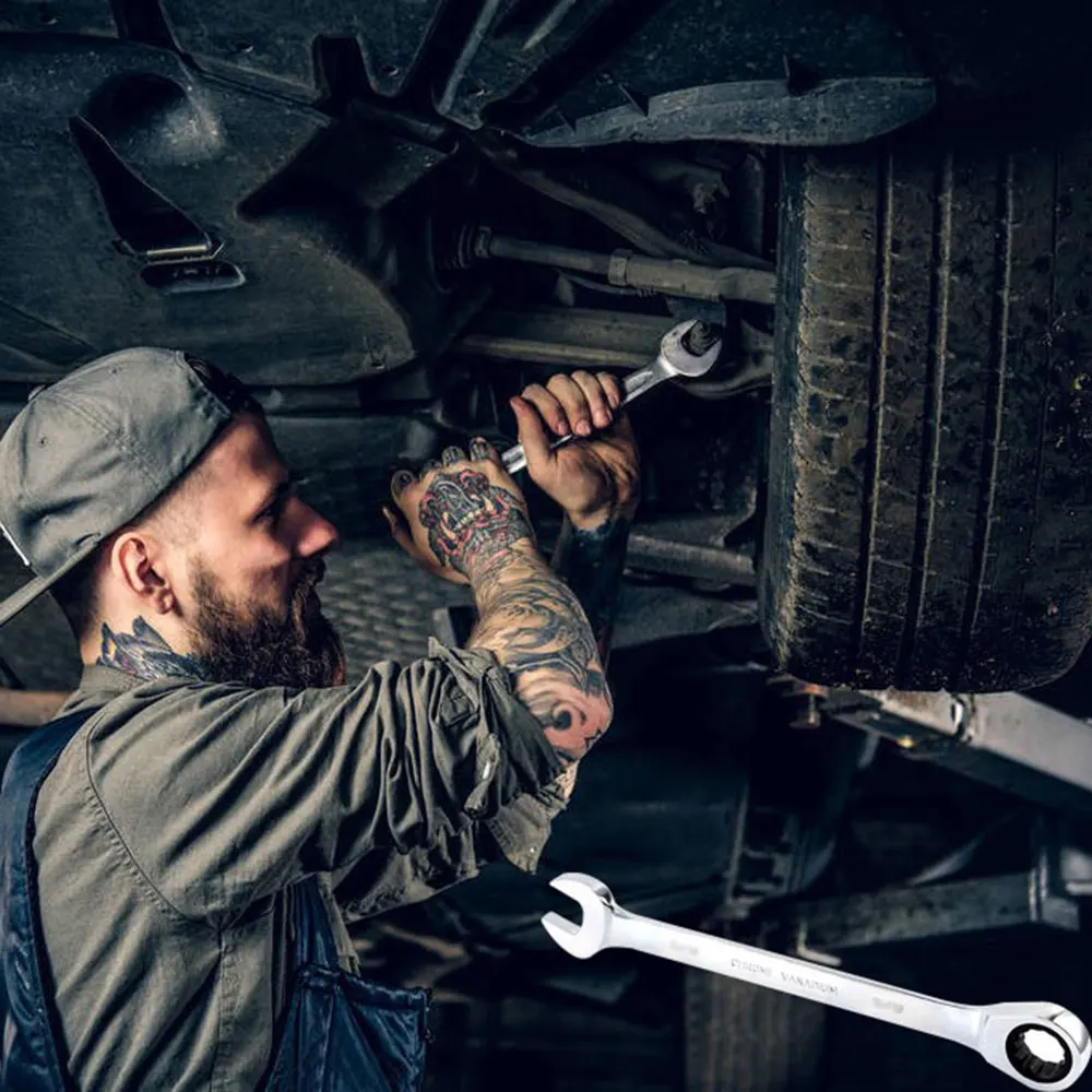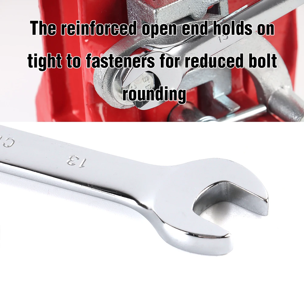 Характеристика:1. Хром-ванадиевая сталь2. Устойчивость к давлению и эрозии3. Подходит для длительного промышленного использования4. Антикоррозийная/нескользящая поверхность5. Фиксированное вращение, в основном используется для ремонта авто-ремонт машины.Посылка включает:10Шт = 10 шт фиксированный ключ комбинация + 1 шт гаечный ключ сумка для хранения