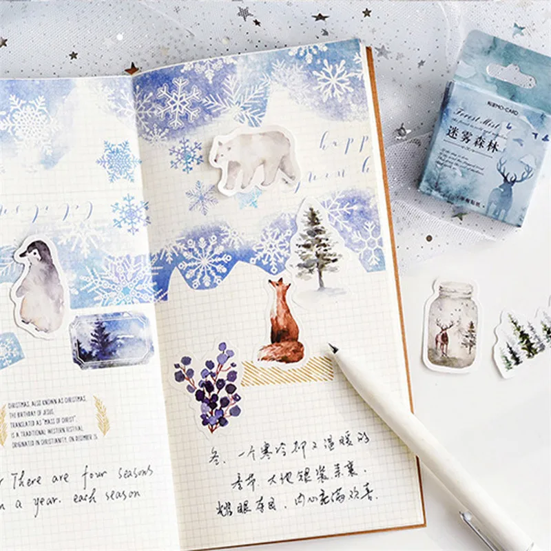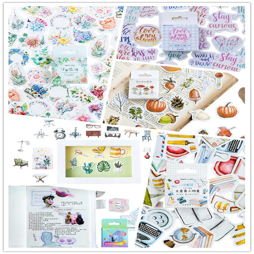 46 шт.кор. милые цветы, забавное настроение леса, бумажные этикетки наклейки украшения для самостоятельной сборки, записная книжка, альбом, печать, наклейки, Канцтовары