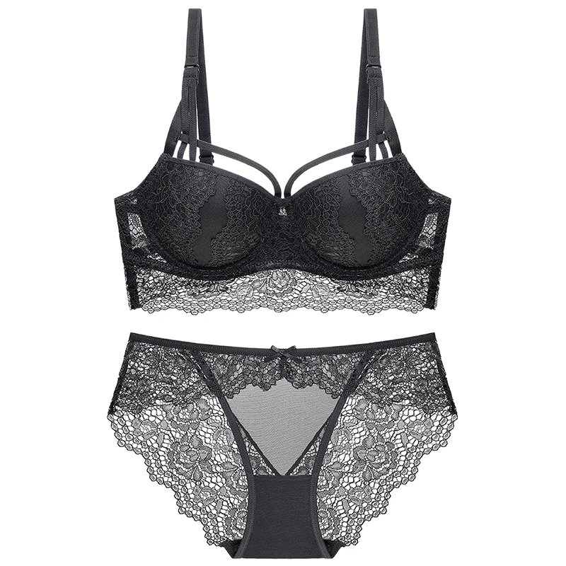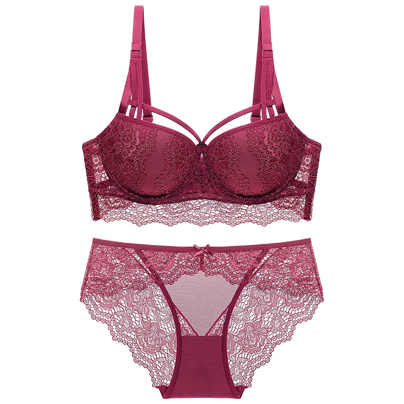 Комплект женского кружевного нижнего белья с бюстгальтером пуш-ап