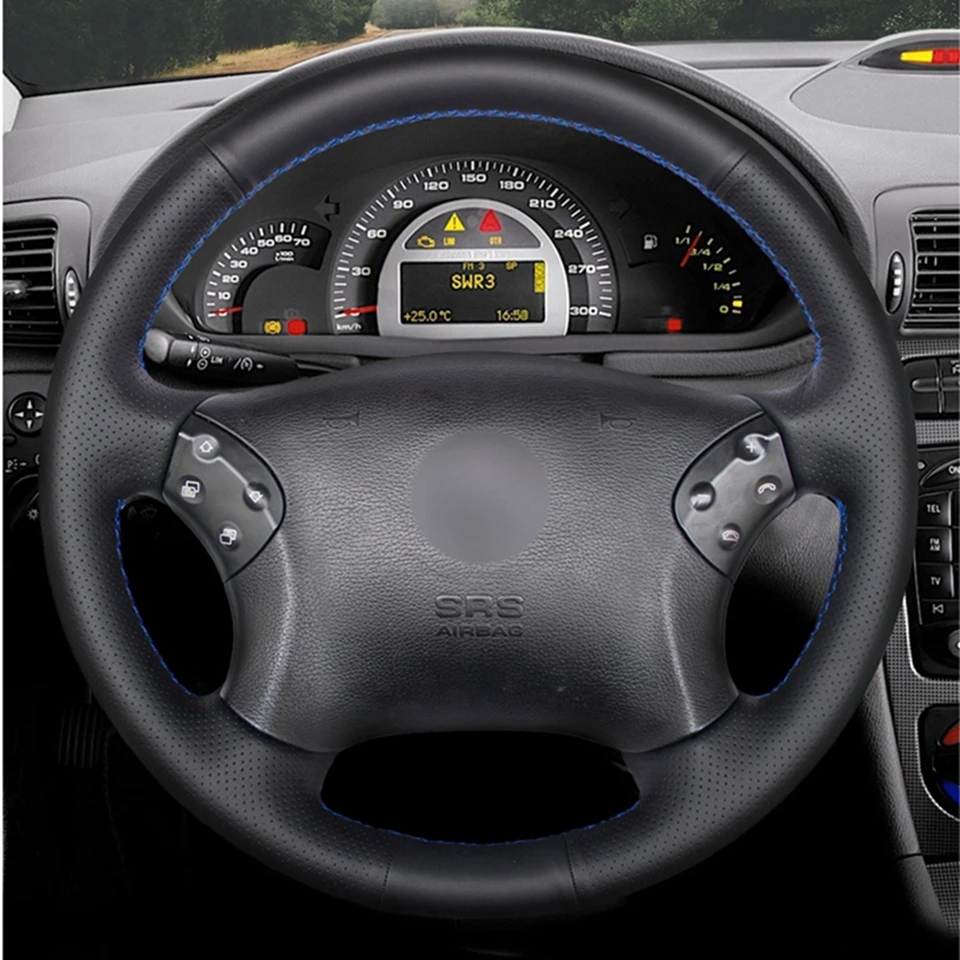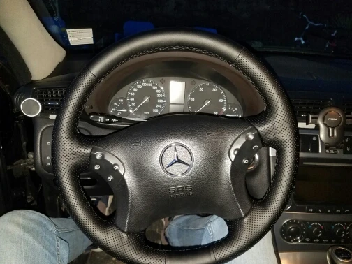 Черный чехол на руль GKMHiR DIY из искусственной кожи чехол рулевого колеса автомобиля для Mercedes Benz W203 C-Class 2001-2007