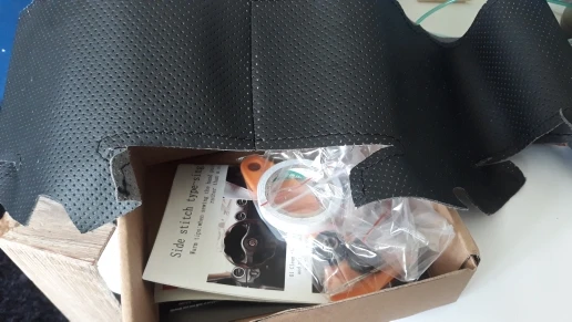 чехол из приятного материала на ощуп, но не соответвует размерам руля, ужасное качество ниток для сшивания и на самой оплетке, как сильно не пытался натянуть его, шов все равно не сошелся