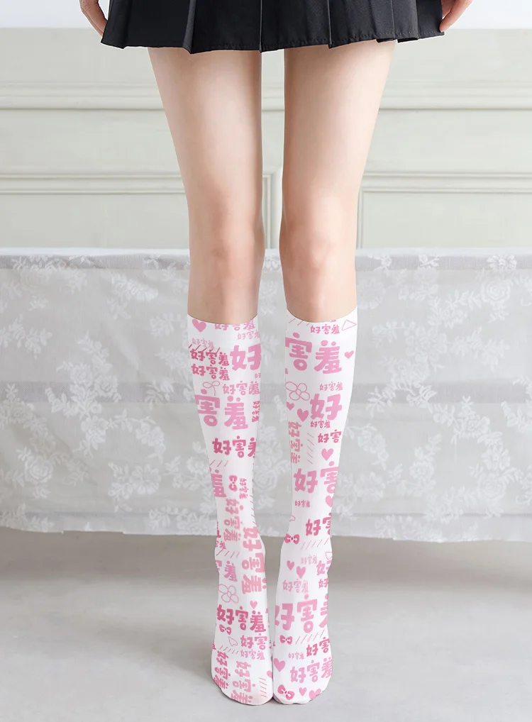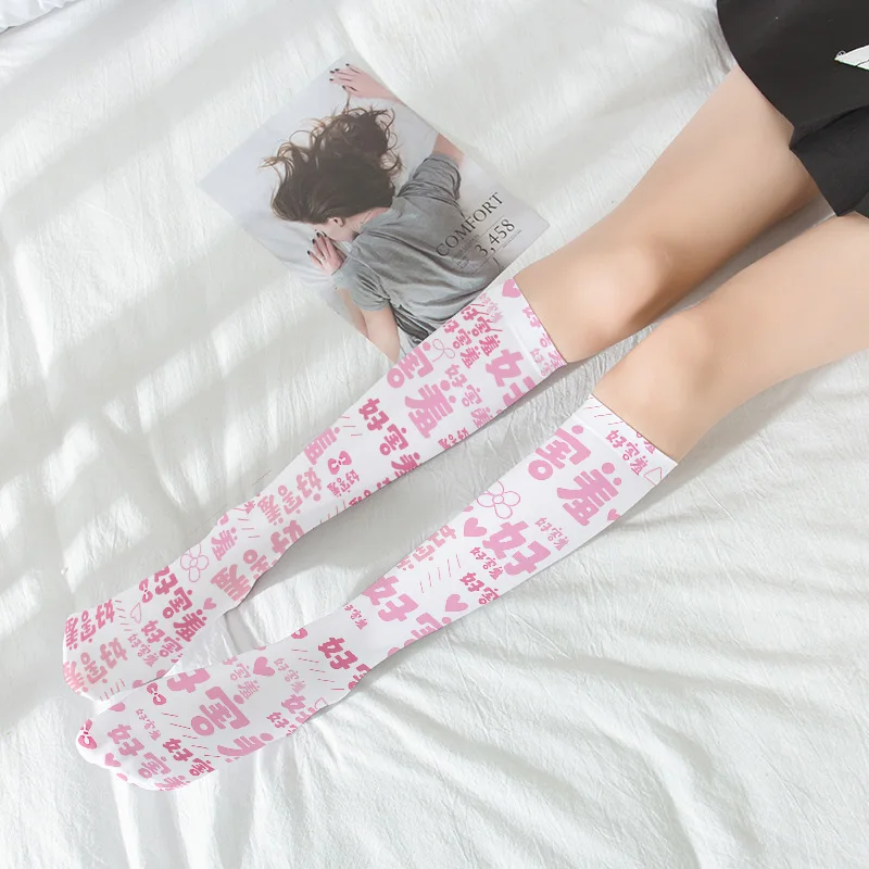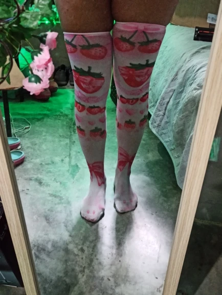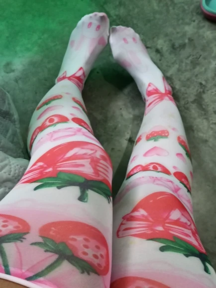 Женские сексуальные чулки до бедра, Осенние чулки с 3D принтом, красная клубника, розовая, милые чулки выше колена, косплей, квадратный элемент
