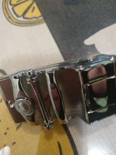 Красивый ремень с очень удобной пряжкой-застежкой. Все отлично, все цело, царапин нет. На ОБ 130 подошло отлично, очень довольны своей покупкой. Спасибо продавцу за хорошую работу. Рекомендую.