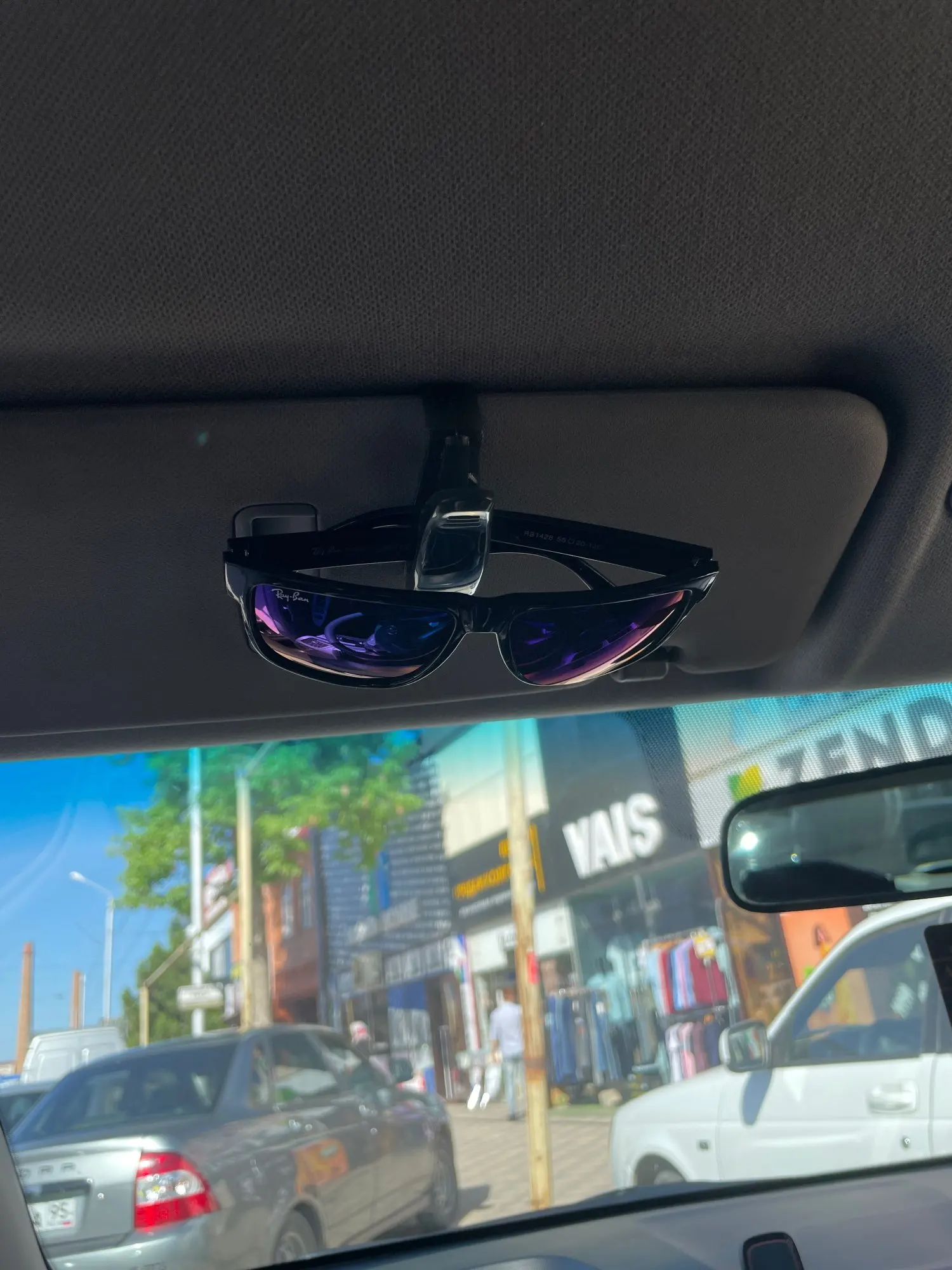 Надежно крепится к солнцезащитному козырьку, не препятствует обзору водителя