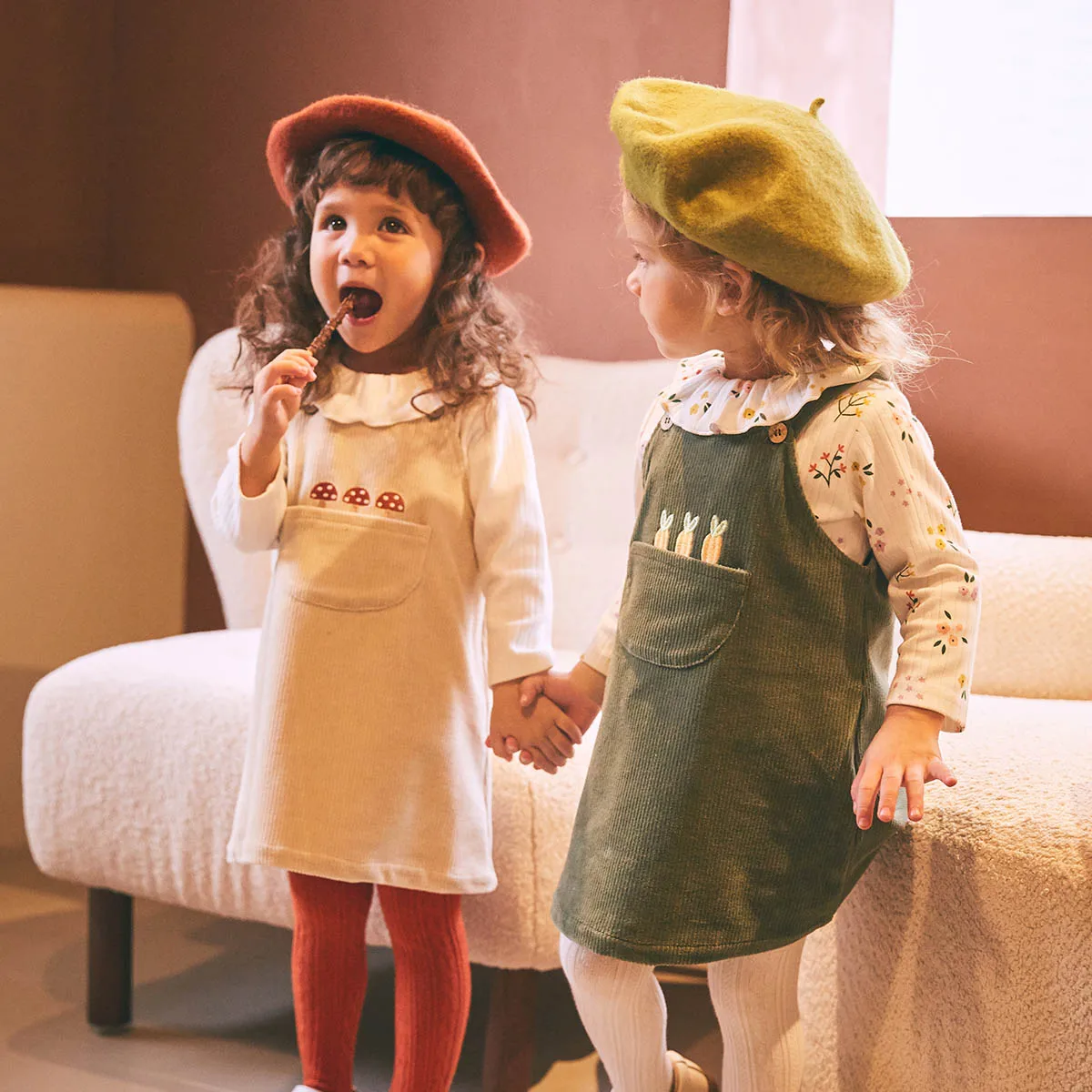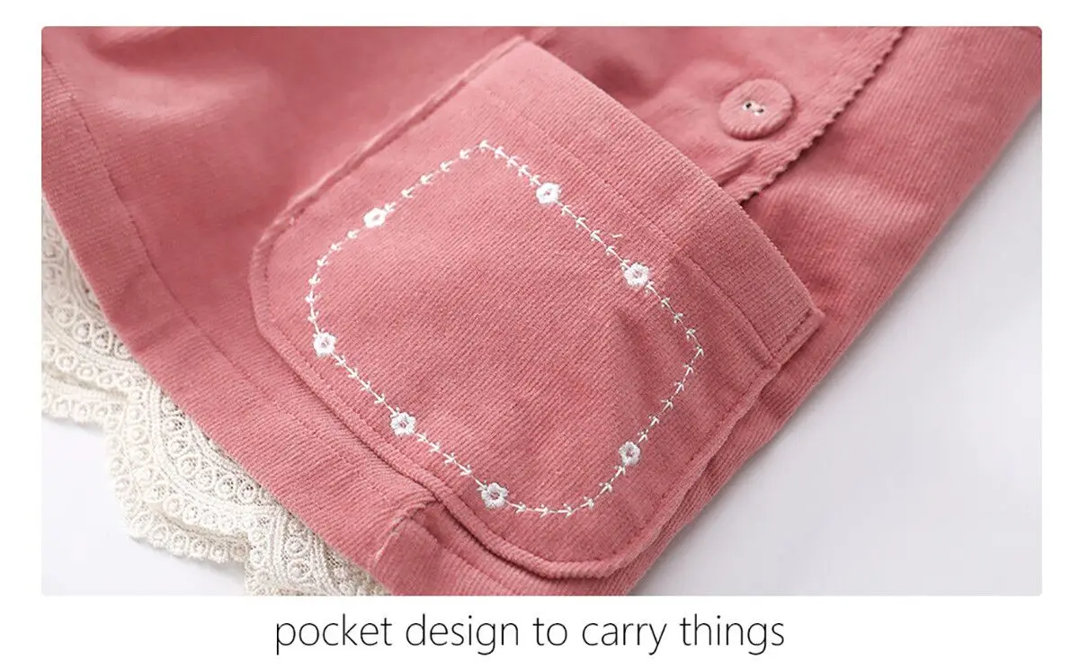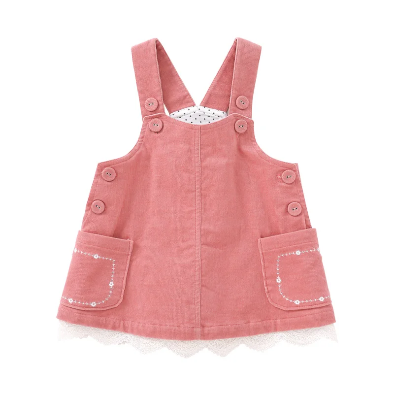 Purebornплатье для маленьких девочек; Весенне-осенняя одежда для малышей; Комбинезоны с подтяжками; Платья с кружевным вельветовым карманом и хлопковой подкладкой