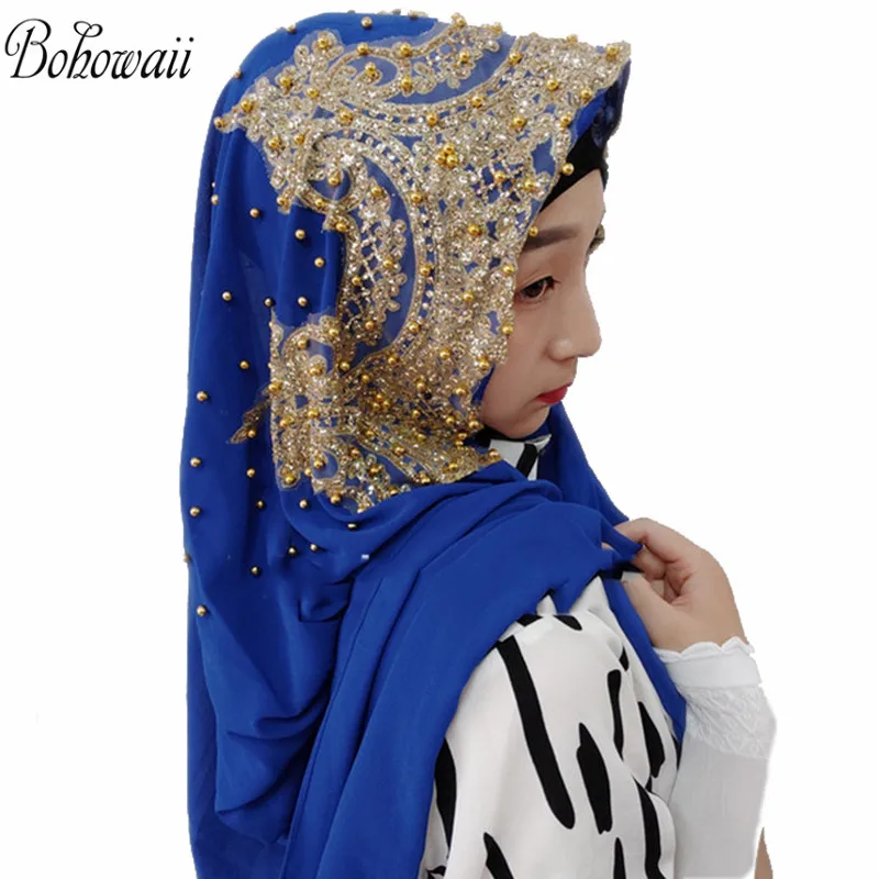 BOHOWAII мусульманский хиджаб Femme Musulman с золотыми бусинами и блестками длинные Хиджабы-шарфы Hoofddoek Модный шифон Turbante