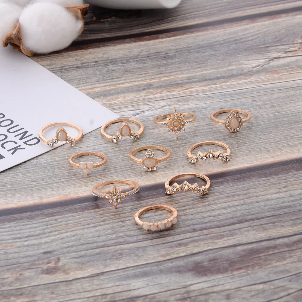 Женский винтажный комплект колец в богемном стиле с изображением капель воды в виде звезды и геометрического кольца с опаловым камнем, необычное ювелирное украшение для свадьбы