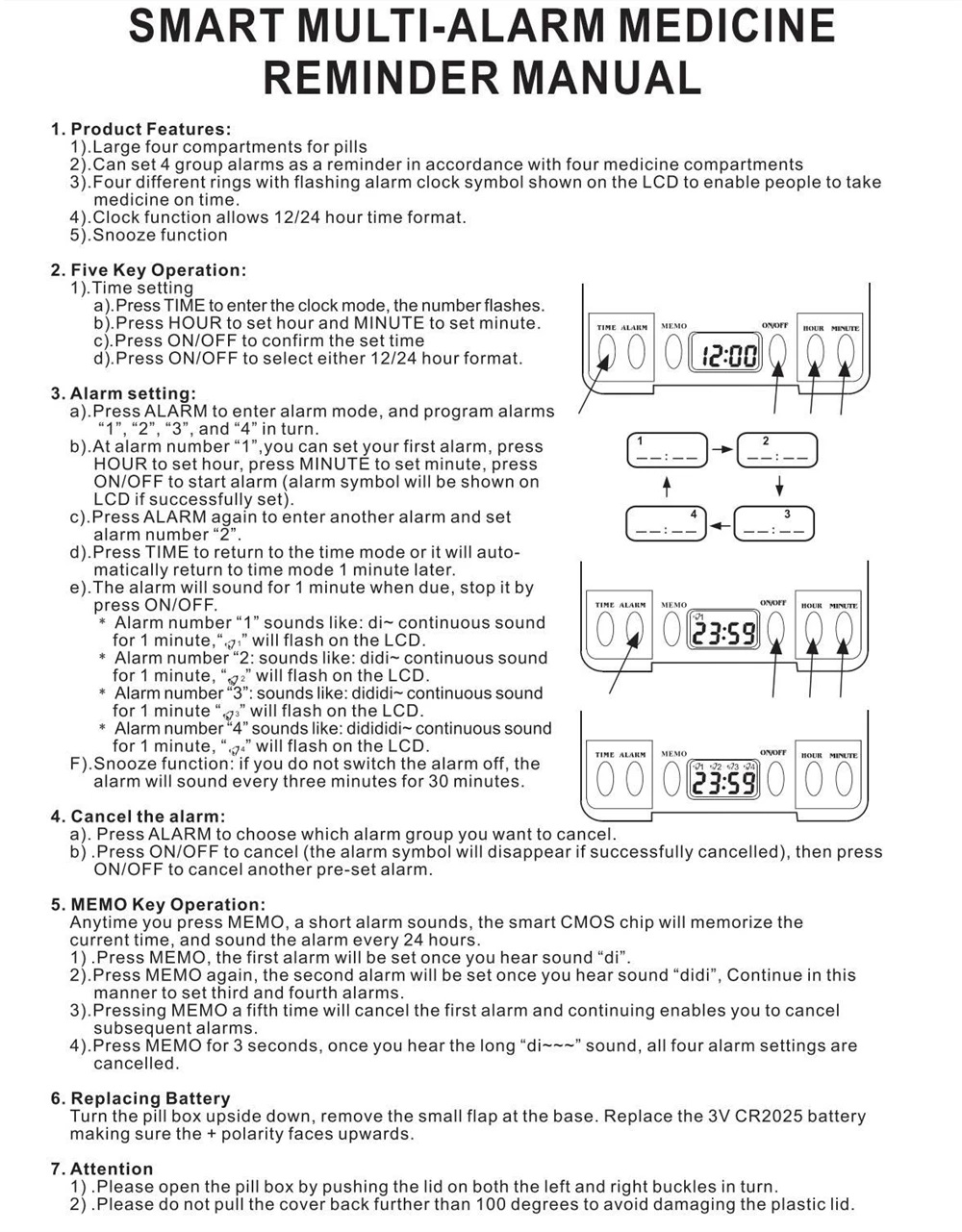 Таблетница отличная. Инструкция не на русском языке. Разобраться умением тыка вышло.