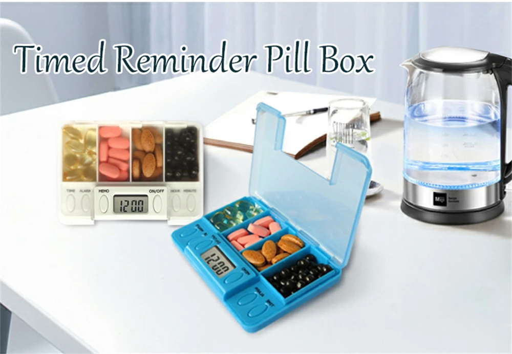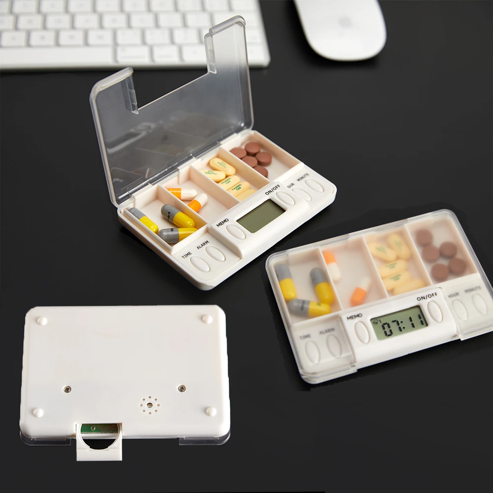 Электронный контейнер для таблеток с 4 отделениями с напоминанием