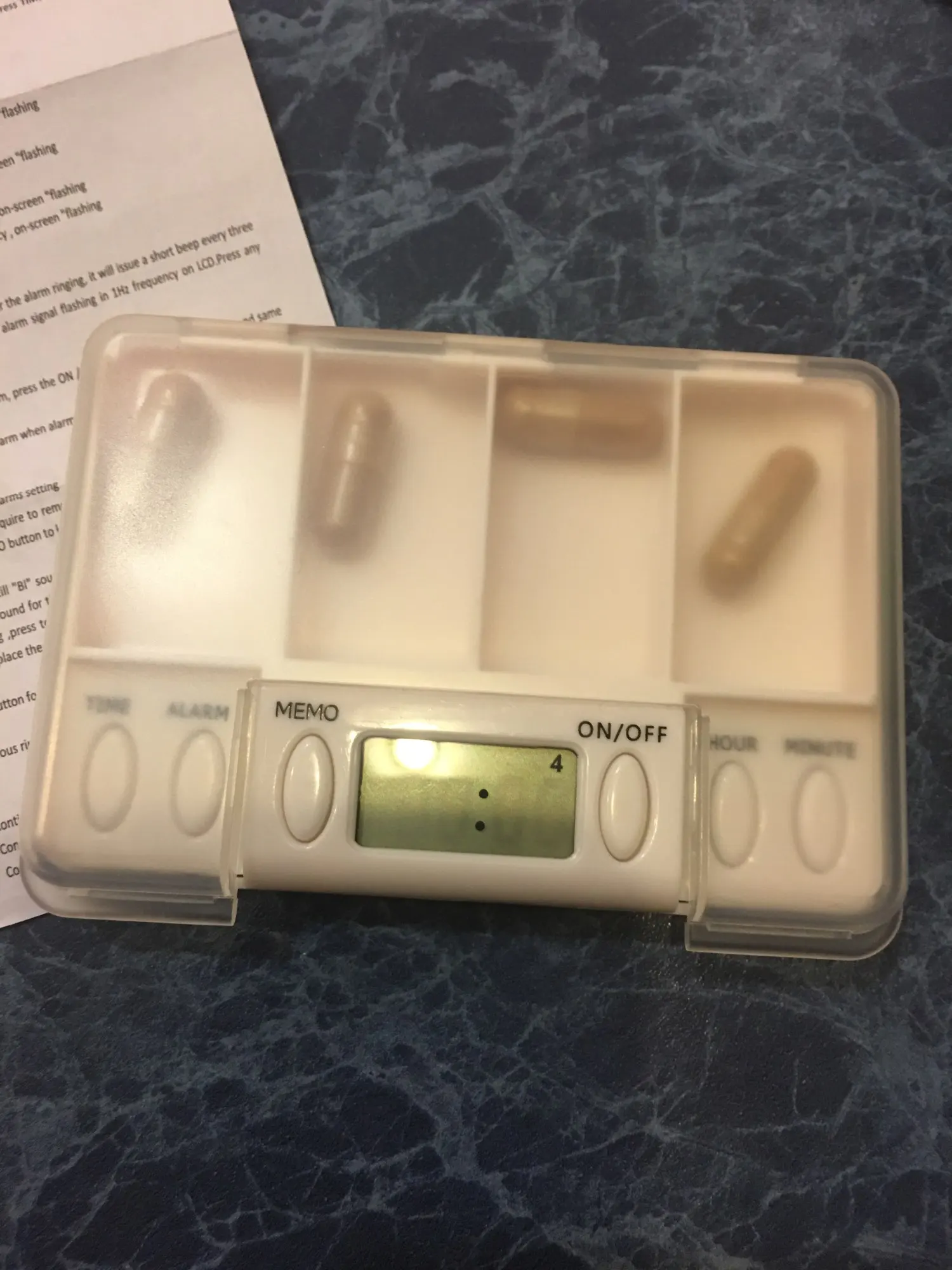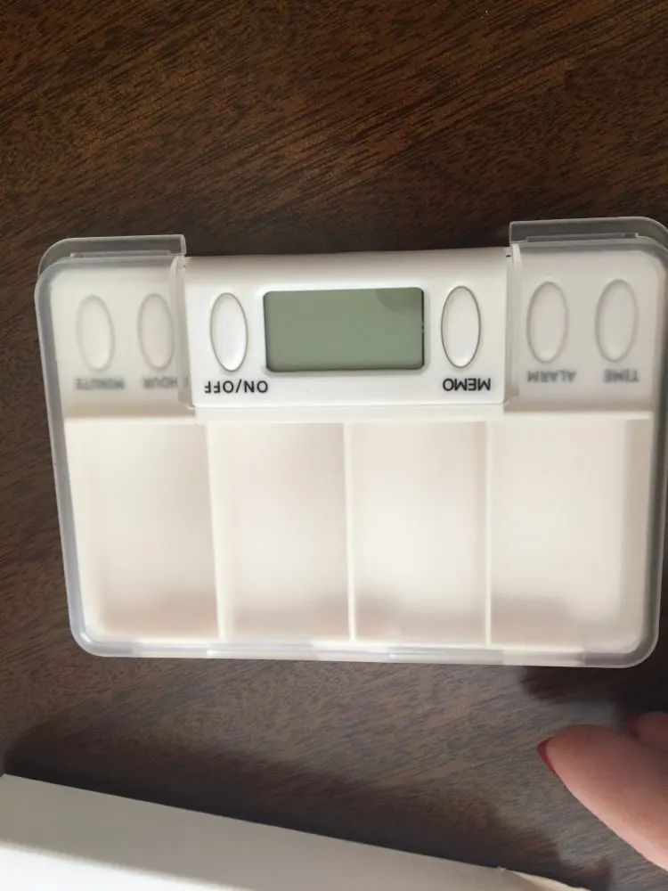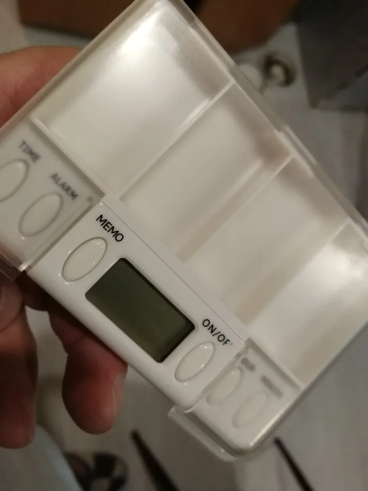 Превосходная таблетница!! Единственный небольшой минус, что не положили туда батарейку, но ничего страшного)) так получается, что в наших современных реалиях такие штучки, как эта таблетница с таймером, уже просят в качестве подарка люди моего возраста (мне 22, на секундочку)!! Для витаминок, омеза, глицина, анальгина...в общем вы поняли)) и вот вроде это печально, что требуется уже приобретать таблетницу (!!!), а вроде и хорошо, так как она, в отличии от таблетниц наших бабушек, теперь с таймером!!!! Белиссимо!!! Браво!!!