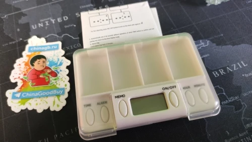 Хорошая небольшая таблетница. Плохо только , что нет в ней батарейки. С инструкцией думаю разберусь. Спасибо продавцу за посылку