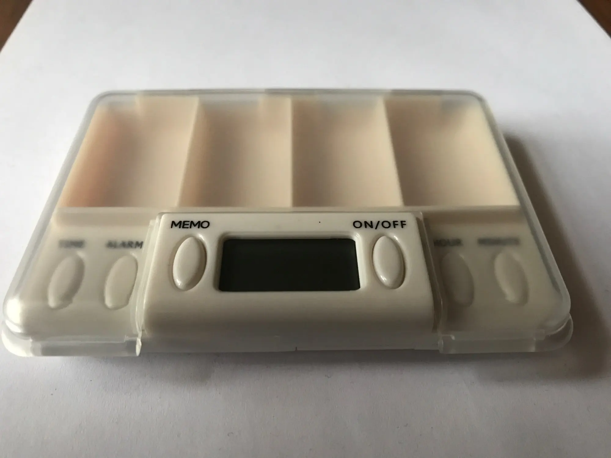 Всё отлично работает, батарейки в комплекте не идут (их купила в fixprice за 55 руб.), будильники работают в назначенное время, неудобна только крышка, которая одна на все 4 отсека и сначала нужно её открыть с одной стороны, потом с другой