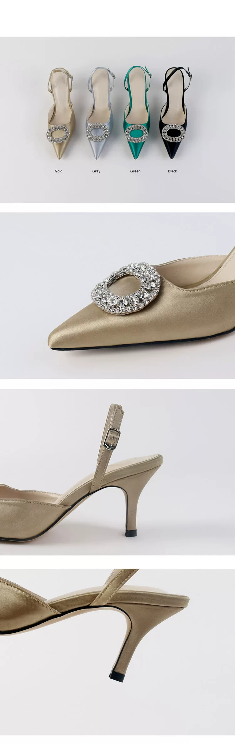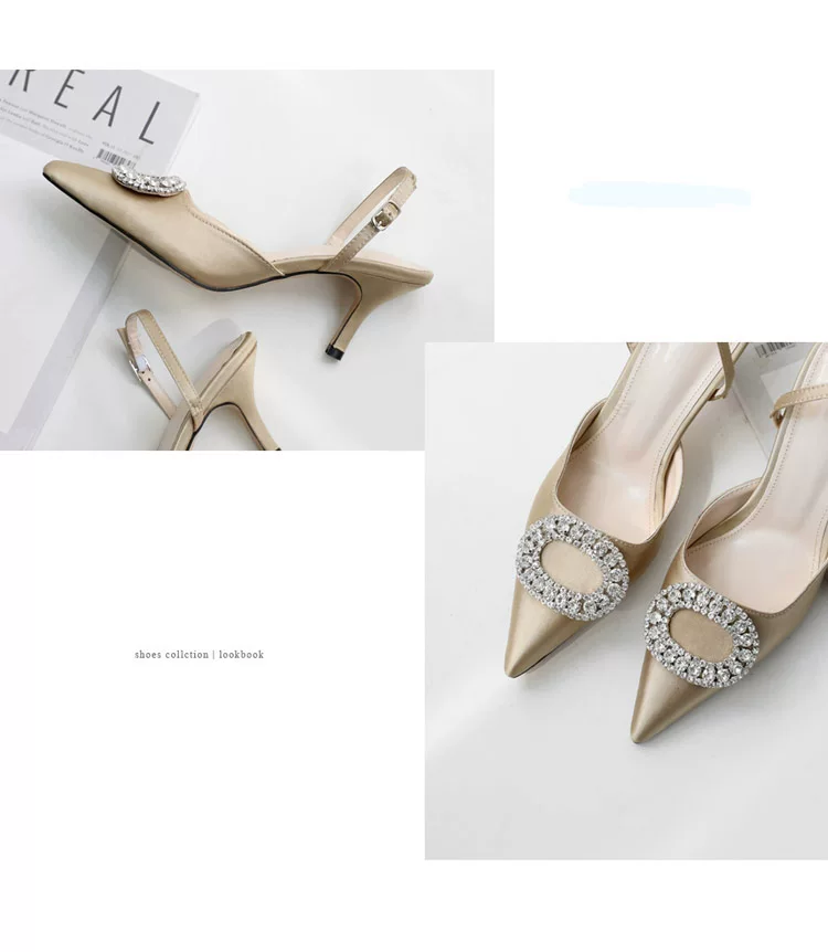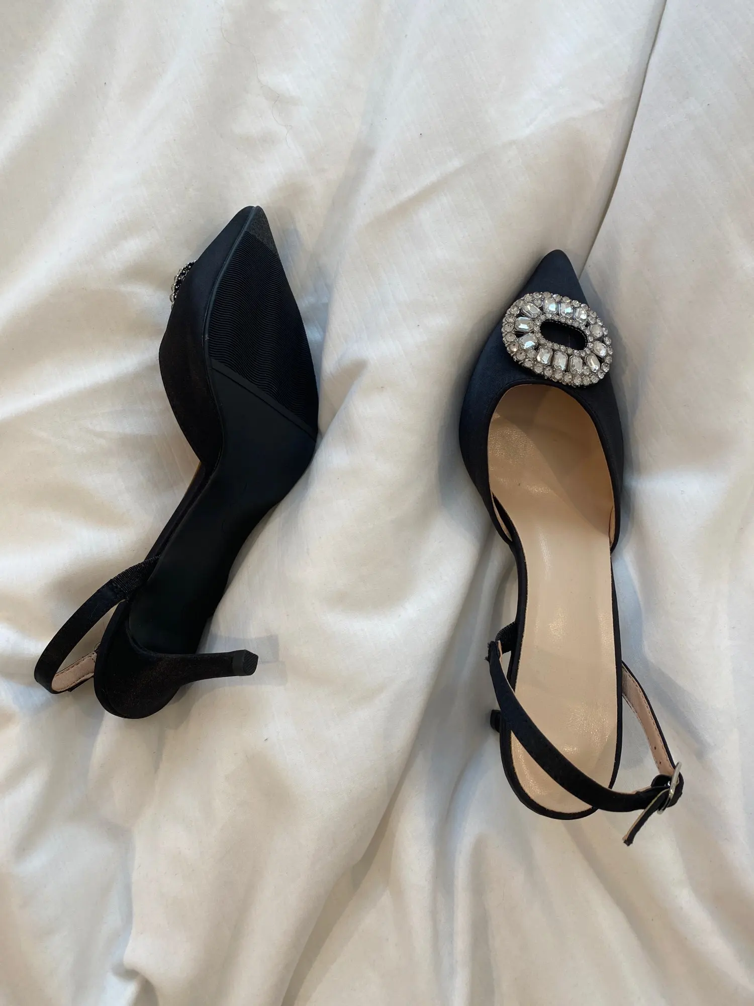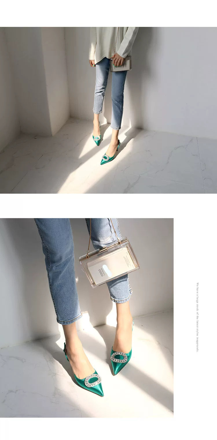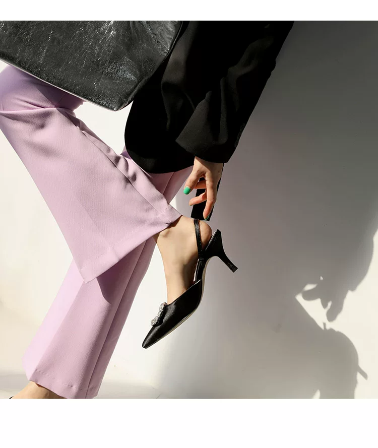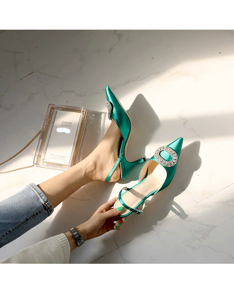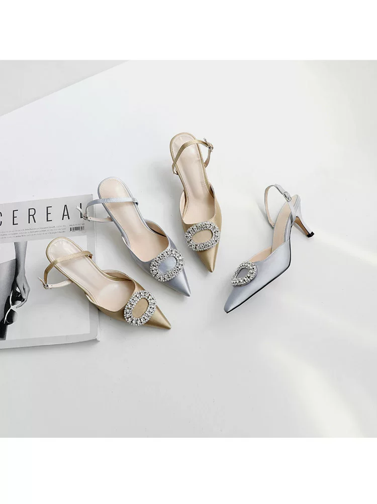 Босоножки женские атласные, с острым носком, на высоком каблуке, с пряжкой